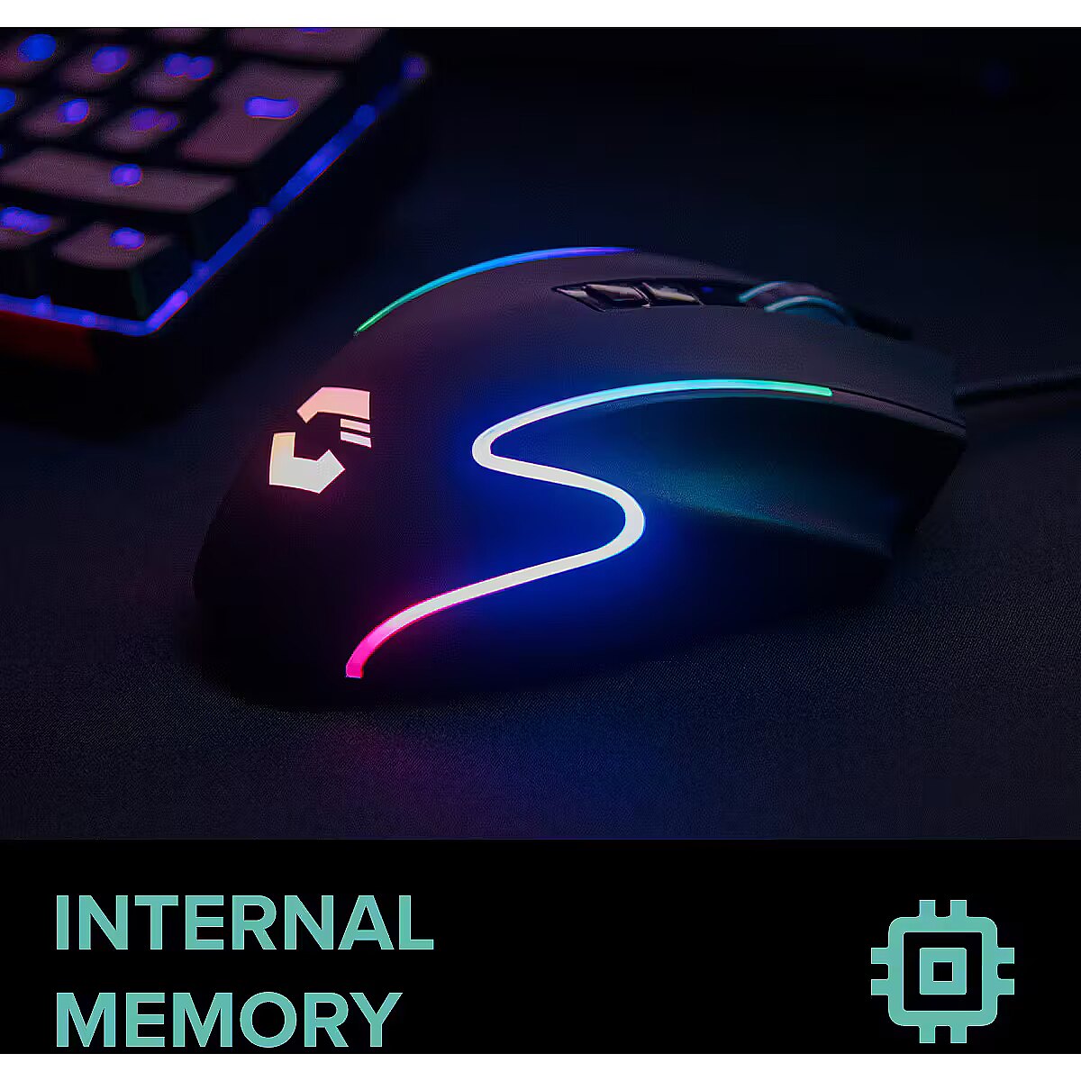 Mängurihiir 6 nupuga (sh kiirtule nupp) + 2 dpi-lülitit Mitmevärviline, kohandatav RGB valgustus eri režiimidega (võimalik välja lülitada) Kummist pinnakate kindla haarde jaoks Punutud kaabel Sensori resolutsioon: 200–12 800 dpi (reaalne), seadistatavad dpi-tasemed Konfiguratsioonitarkvara mitme profiili ja makrotugi Kohandatavad nupud ja valgustus Sisemälu seadete salvestamiseks Maksimaalne sensori kiirendus: 20 g Maksimaalne jälgimiskiirus: 60 ips
