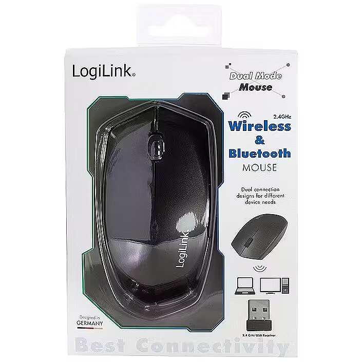 Description - Hours of working with the computer mouse often causes a unnatural posture and pain. LogiLinks scientific advanced ergonomic computer mouse has natural hand positioning which eases hand and wrist tension. The dual connection mode allows you to switch between 2.4 GHz wireless and BT 4.2. After 10 minutes of inactivity, the mouse automatically switches to sleep mode to saving power. In addition, this mouse features an on/off switch.