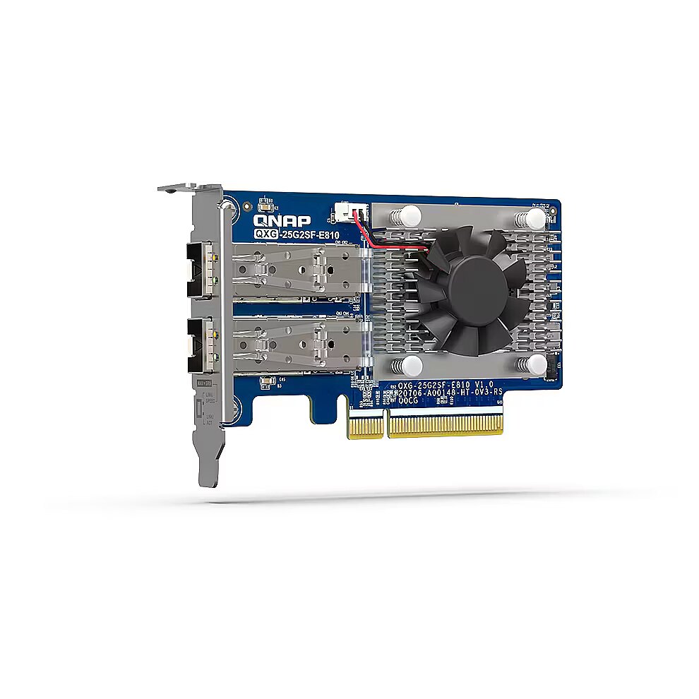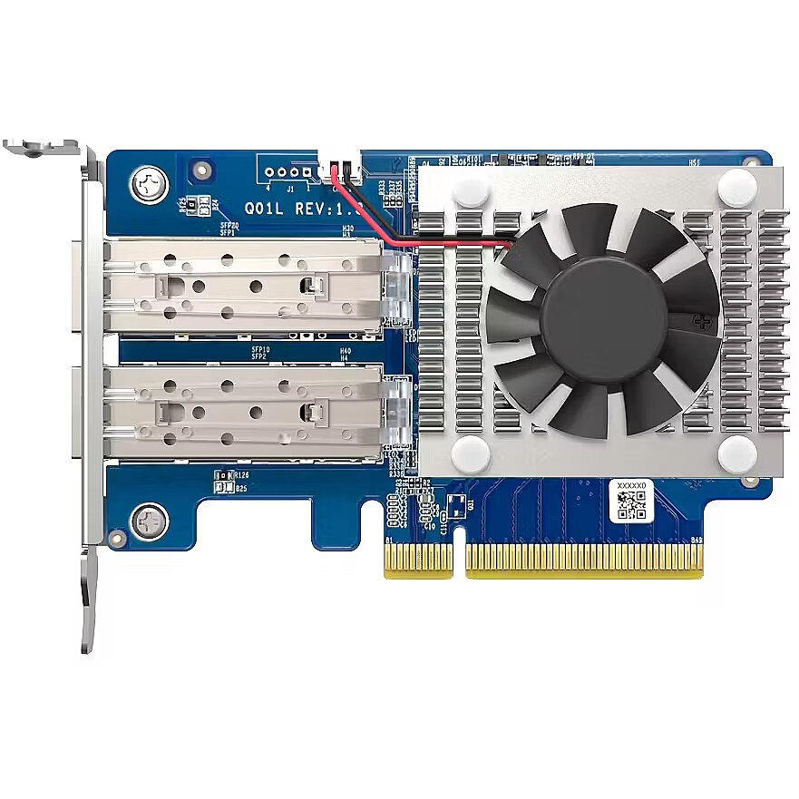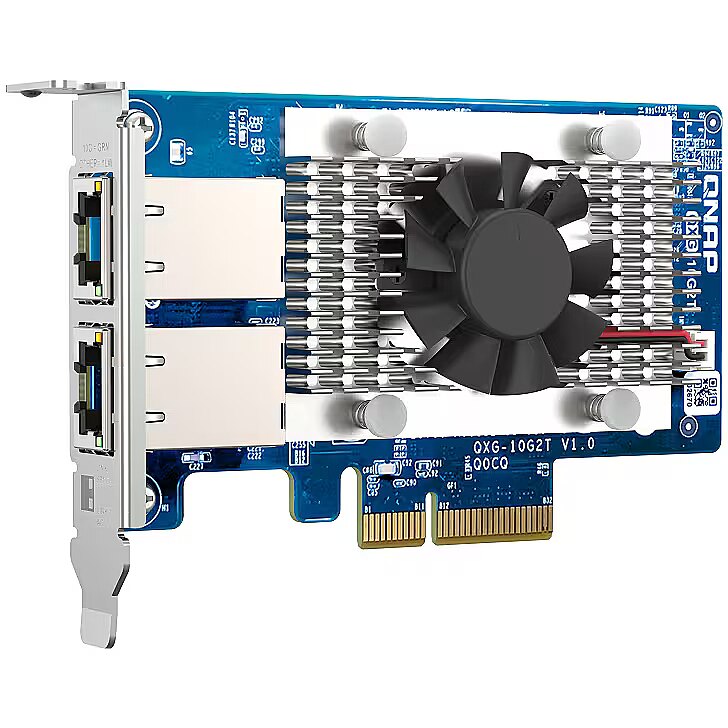 LongDesc - The dual port QXG-10G2T-X710 is a PCIe Gen 3 (compatible with PCIe Gen 2)10GbE network expansion card with an Intel Ethernet Controller X710 and supports up to five speeds (10G / 5G / 2.5G / 1G / 100M). By using Port Trunking, both ports can be combined to achieve up to 20Gbps transfer speeds for accelerating file sharing and intensive data transfer. With SR-IOV and iSCSI support, the QXG-10G2T-X710 greatly boosts network efficiency and is ideal for I/O-intensive and latency-sensitive virtualization applications and data centers.Build a 10GbE Network EnvironmentThe QXG-10G2T-X710 can be used with QNAP’s 10GbE switches, such as the QSW-M2108-2C or QSW-1208-8C, for you to build a budget-friendly high-speed network environment.Supports SR-IOV and iSCSI, Achieve the Best Virtualization EnvironmentThe QXG-10G2T-X710 supports SR-IOV, which can allocate bandwidth resources from a physical network card directly to VMs. It ensures reliable VM applications and reduced CPU overheads. The QXG-10G2T-X710 also supports iSCSI, which enables computers, servers, or virtual machines to use storage from your QNAP NAS as virtual disks. You can partition, format, and use these virtual disks exactly like local disks, or even use them for storage expansion or as backup destinations.Supports Windows and Linux servers/workstationsBesides QNAP devices, the QXG-10G2T-X710 supports Windows® 10, Windows Server®, and Linux ( driver required), allowing you to attain optimal business performance for a wider range of system applications and services.