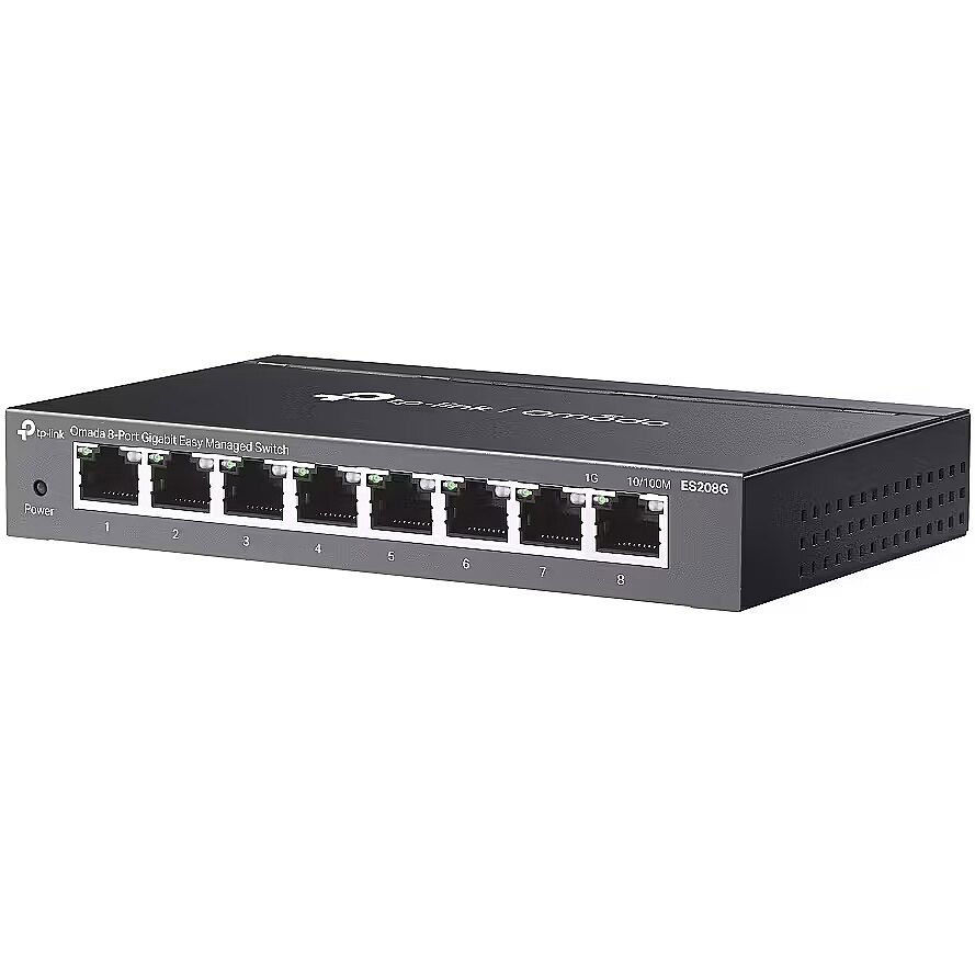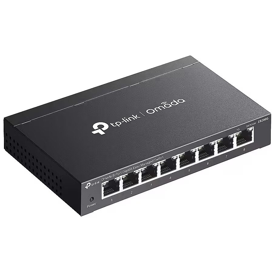 Description - TP-LINK OMADA ES208G Omada 8-Port Gigabit Easy Managed Switch 8× 10/100/1000Mbps RJ45 ports Easy to Use: Supports plug-and-play for instant connectivity and simple configuration for additional features Centralized Cloud Management via the web or the Omada app† VLAN, Port Isolation, Cable Test△, QoS△ for reliable surveillance networking Automatic Loop Prevention and IGMP Snooping Fanless design for silent operation Durable metal casing and desktop/wall mounting design