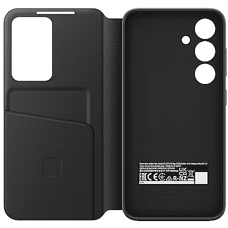 description_en - Samsung Smart View Case Black Case type: Wallet case Brand compatibility: Samsung Compatibility: Galaxy S24 Maximum screen size: 15.8 cm (6.2") Surface coloration: Monochromatic Product colour: Black Number of card pockets: 1