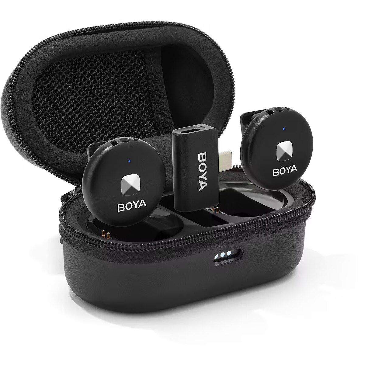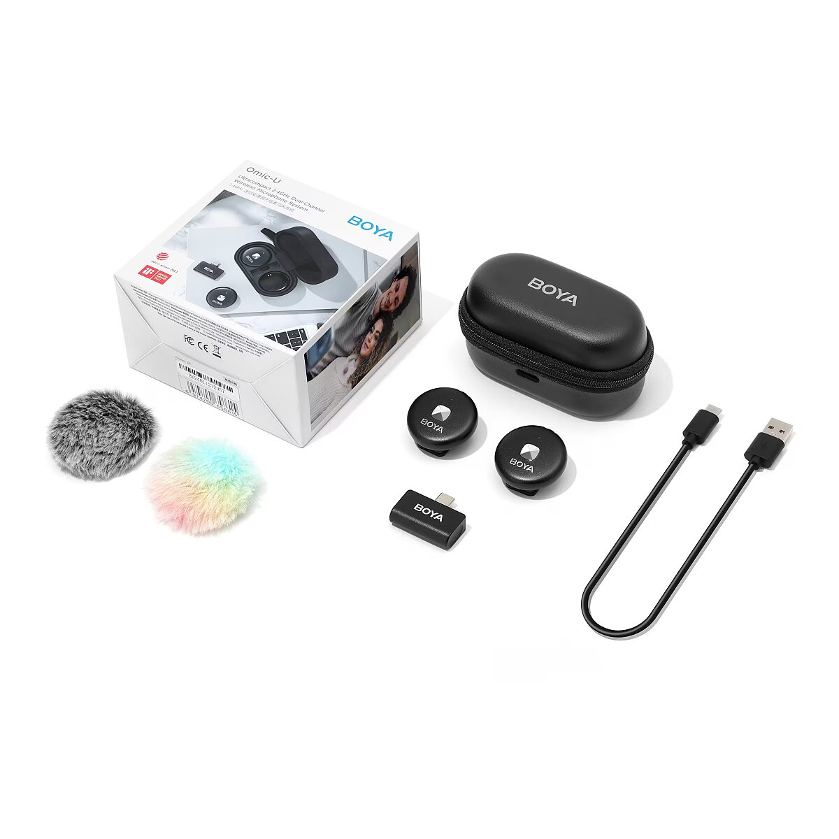 description_en - The Boya Omic is an ultra-compact and portable 2.4GHz wireless microphone system, compatible with computers, Android mobile devices and more. The Omic is ideal for content creation, live streaming, vlogging, mobile journalism and much more. The set includes two transmitter-microphones, one receiver, furry wind shields and a practical case for carrying and storing the set. It features automatic pairing and selectable noise cancellation, delivering broadcast-quality sound with remarkable ease of use. The receiver is device powered and the microphones have USB-C charging ports, which support charging and powering of devices while in use. Also available in 48kHz HD audio when noise cancellation enabled. Wide-range 20-20,000Hz frequency response delivers exceptional high-quality sound Built-in rechargeable lithium-ion battery provides 5+ hours of recording USB-C digital output - universal compatibility with computers and Android mobile devices Up to 50 m wireless operating range Magnetic belt clip is detachable
