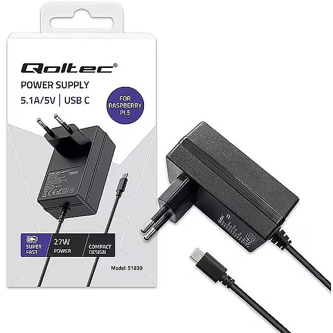 Name - Qoltec Ładowarka Super FAST PD do Raspberry PI 5 | USB-C | 27W | 5.1V | 5A | Czarna