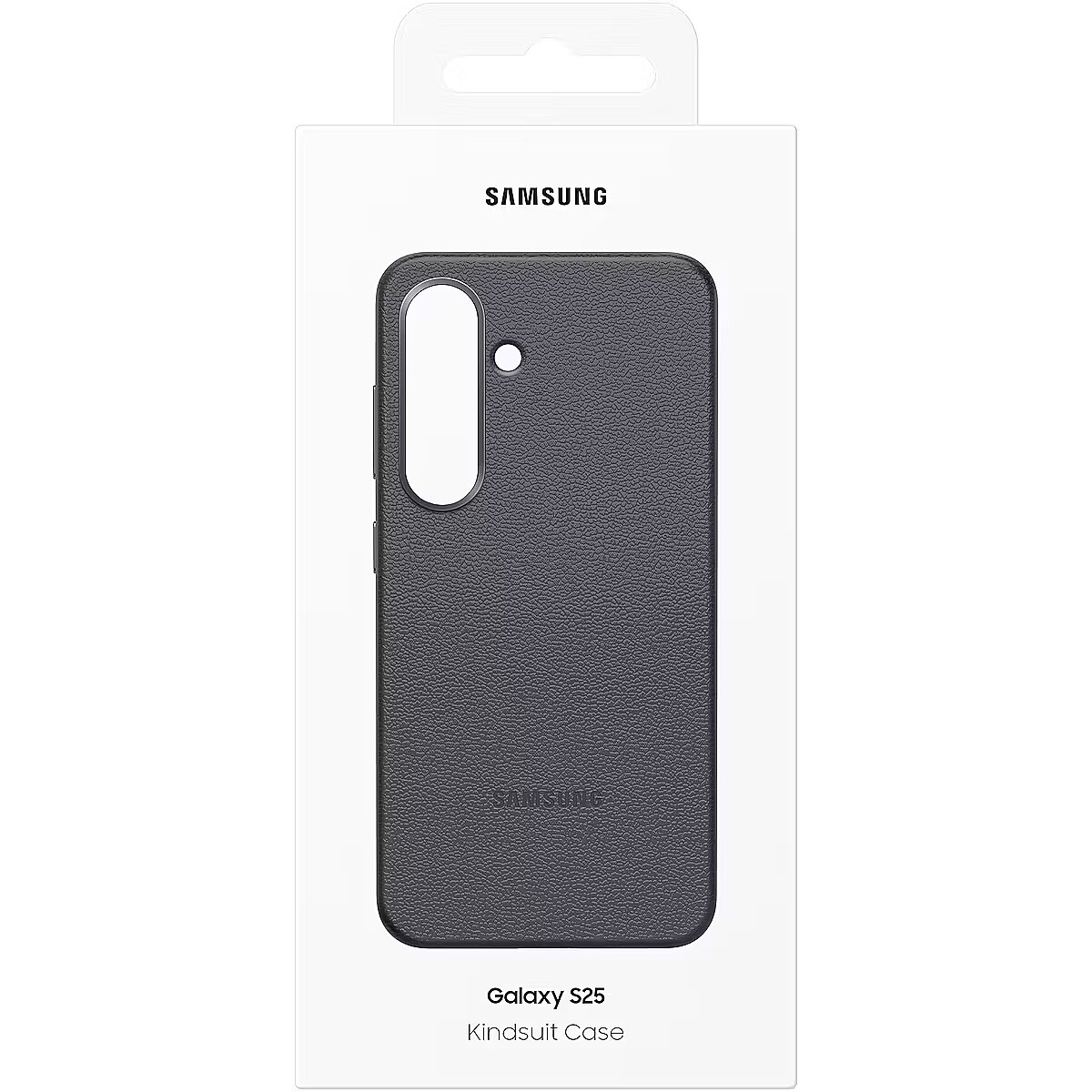 LongSummaryDescription - Samsung Kindsuit Faux Leather Case for Galaxy S25. Case type: Cover, Brand compatibility: Samsung, Compatibility: Galaxy S25, Maximum screen size: 15.8 cm (6.2"), Surface coloration: Monochromatic, Product colour: Black