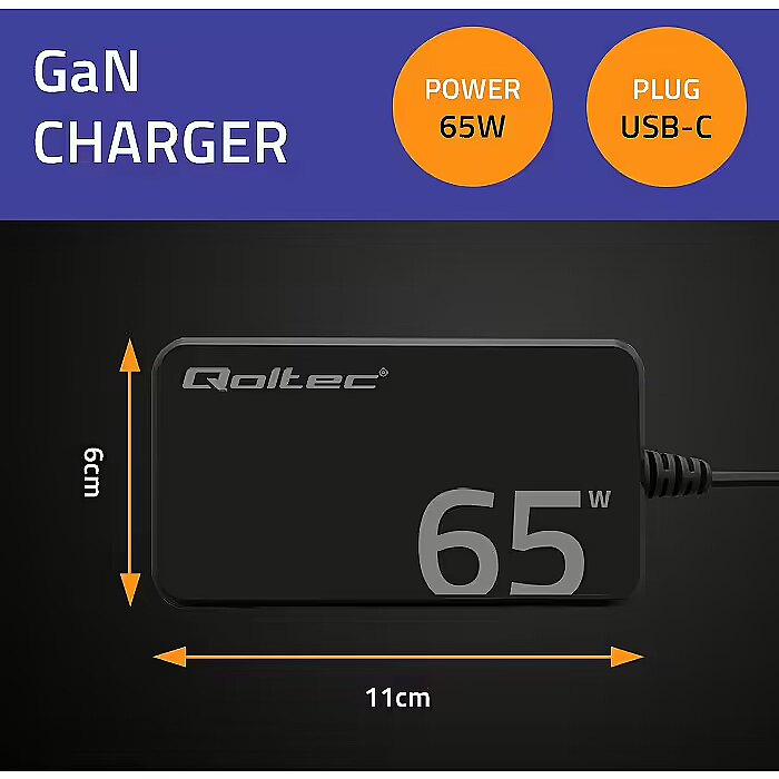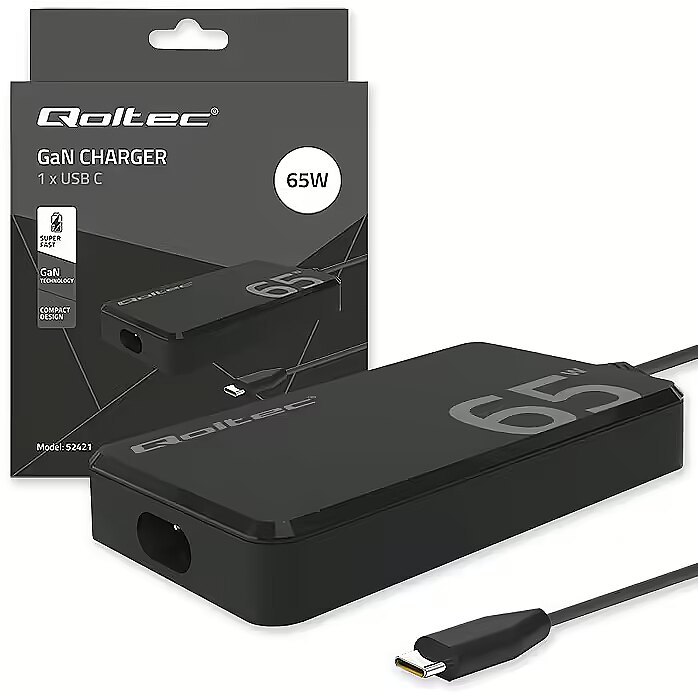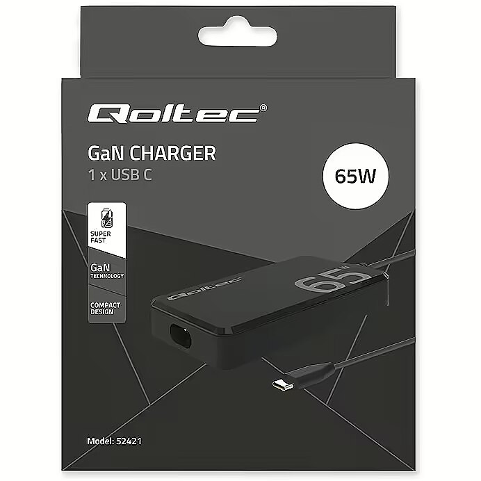 Name - Qoltec 65W GaN Super Fast SLIM | PD | 5-20V | 3.25A | USB-C 3.1 | Laptop | MacBook |Smartfon | + kabel