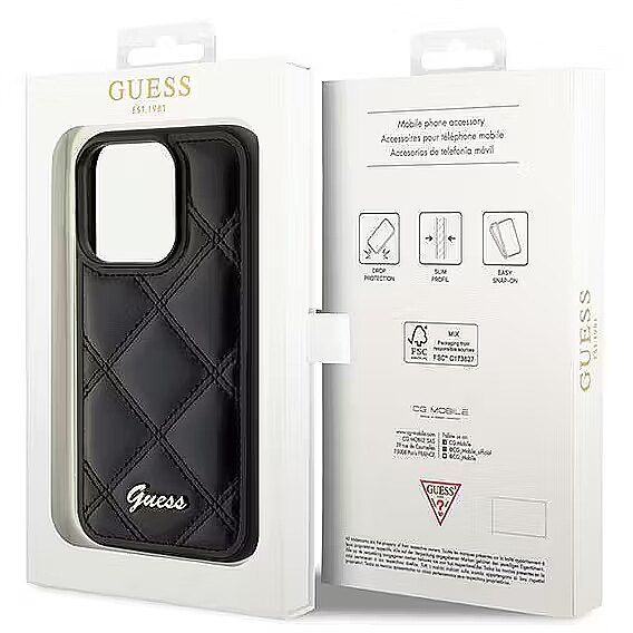 Name - Guess GUHCP15XPSQSQSK iPhone 15 Pro Max 6.7" black hardcase Quilted Metal Logo | GUESS