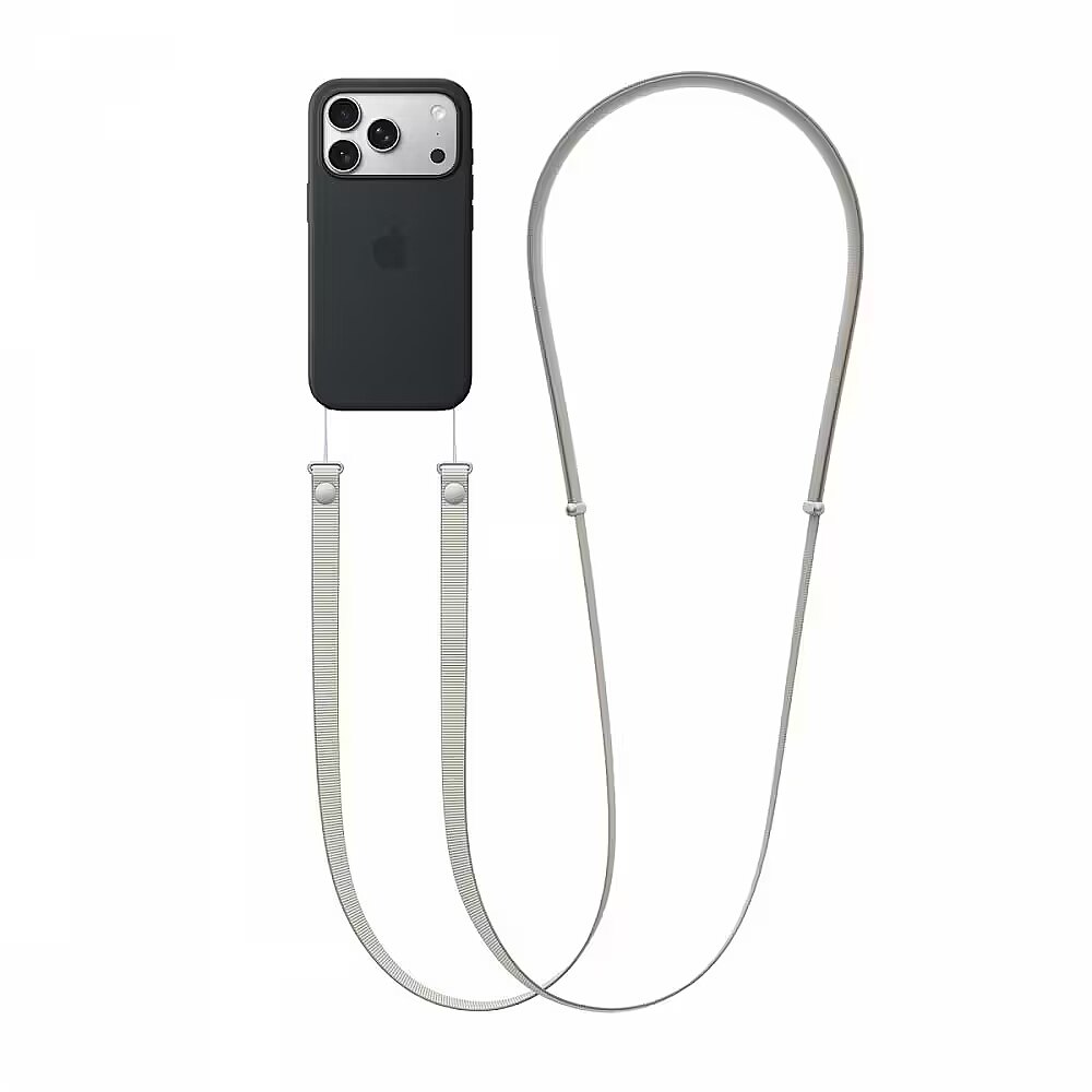 MediumDescription EN - The Crossbody Strap offers a convenient, hands-free way to carry your iPhone by attaching it to a compatible Apple case. Made from 100% recycled PET yarns, the narrow strap rests comfortably across the body. Integrated magnets and stainless steel sliders allow smooth length adjustment and keep the straps aligned. • Adjustable length: 108–208 cm• Made from 100% recycled materials