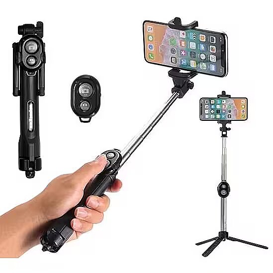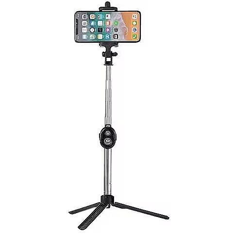 RoGer Selfie Stick + Tripod Stand with Bluetooth Remote Control Black