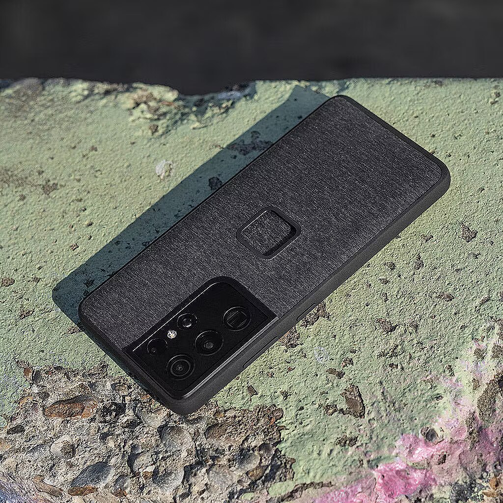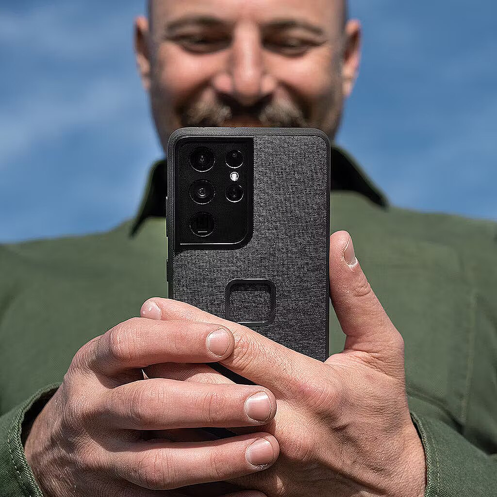 A phone case with the perfect balance of slimness, smart aesthetics, and protection, plus it brilliantly connects to the entire Peak Design Mobile Ecosystem (and MagSafe accessories, too). It's like a tuxedo for your phone—a tuxedo with a slim 2.4 mm profile and protective rubberized bumper, all wrapped in beautiful nylon canvas shell. But what truly sets the Everyday Case apart is the brilliant magnetic/mechanical lock that's built right into it. We call this mounting technology SlimLink™, and it's so fast and secure that it borders on magic. With this case on your phone, you can instantly connect to all Peak Design Mobile mounts, chargers, and accessories. It even works with Apple MagSafe chargers and accessories, too. Unlock the peak design ecosystem Connects to all Peak Design Mobile mounts & accessories Built-in magnetic locking technology (called SlimLink™) is ultra secure and feels like magic Works with MagSafe Compatible with MagSafe accessories & chargers Note that compatibility with all 3rd party chargers (even Qi certified chargers) is not guaranteed Slim & protective Super-slim 2.4mm profile Rubberized full-surround shock-absorbing bumper Protective lip around screen and camera lenses Rugged 2m (6ft) drop protection Better materials = better case Nylon canvas fabric shell is weatherproof, 100% recycled, and Bluesign-approved Ultralight polycarbonate body Works with peak design straps 2 mounting points for Peak Design Anchors let you tether/carry your phone with any Peak Design strap NB! S-Pen Compatibility Note: because case contains magnets, use of the Samsung S-Pen stylus accessory is not possible while your phone is in the case. PowerShare Compatibility Note: for the same reason listed above, use of the PowerShare feature (wireless power sharing between phones) is also not possible when your phone is in this case.