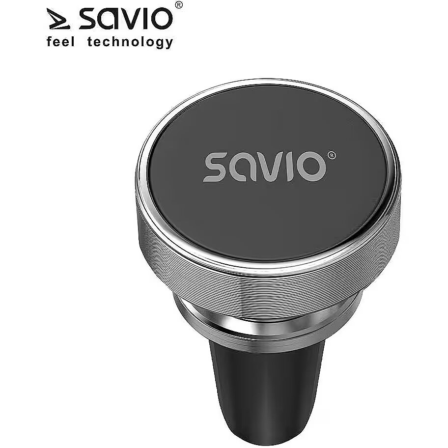 Description - Car magnetic phone holder Savio CH-03 Car magnetic phone holder Savio CH-03 is a universal holder, ready to be attached to your car vent. It is easy to be installed and compatible with the majority of phones. It allows easy access to your smartphone during a ride. You can connect and disconnect your phone with one hand. It is possible to mount it vertically and horizontally. Moreover, Savio CH-03 enables you to comfortably speak through a loudspeaker. The phone holder is stable on every road. Adjustable Angle The holder can be rotated 360° so the user can find the perfect angle. Thanks to that, you can have even easier access to your GPS. A stable magnetic field does not interfere with a phone signal and will not affect the functionality. The installation of the magnetic holder Savio CH-03 is attached to a car vent. You only need to insert the connectors into car vents. The vent connectors hold a stable position and protect from scratches. If you want to change its position. Functional and compact design enables full control and doesnt obstruct the view. The silver color of the holder fits perfectly with any car interior.