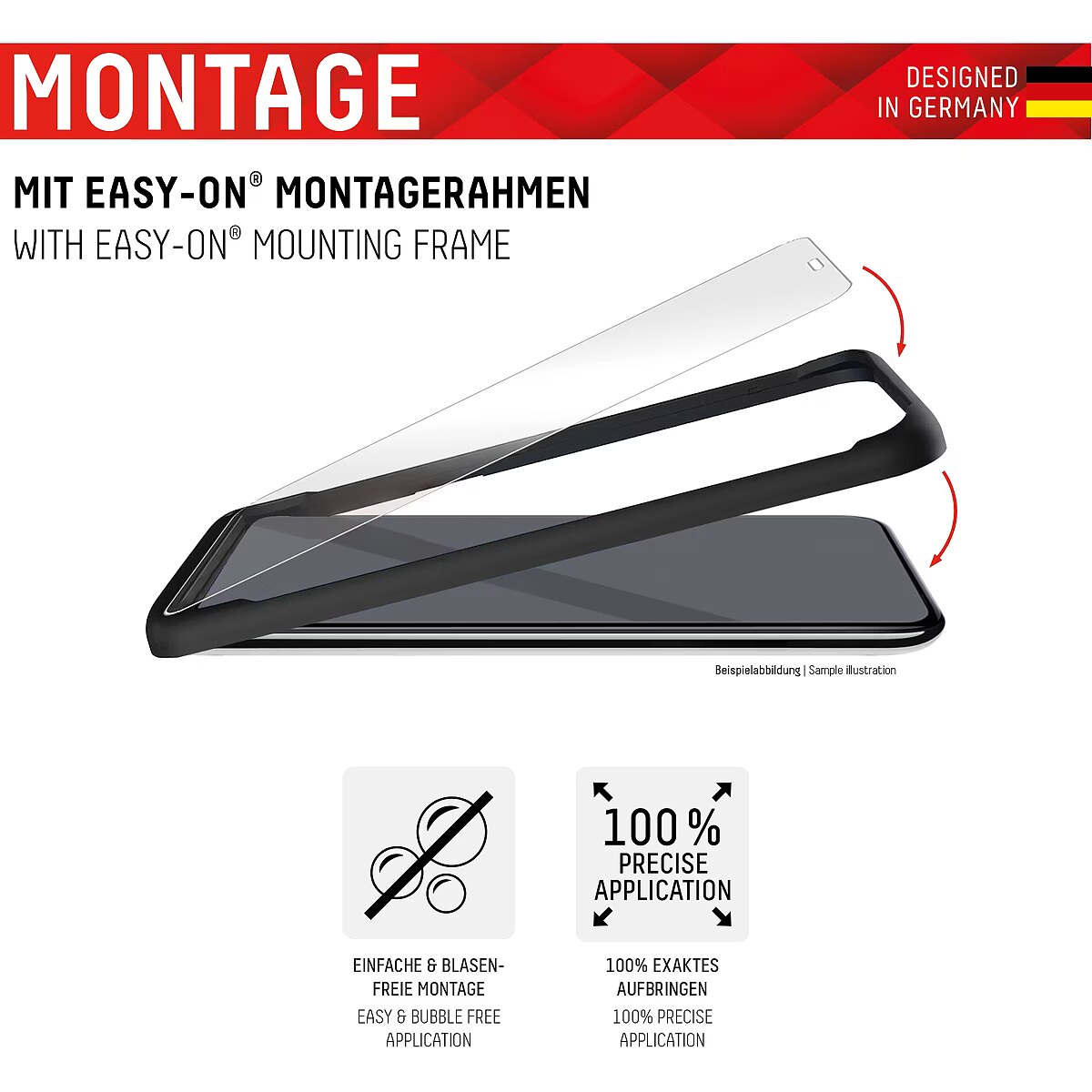 LongDesc - Real Glass (2D) with EASY-ON® Eco Mounting Frame Tempered glass with rounded edgesAll Displex protective glasses have a surface hardness of 10H and are therefore not only more scratch-, break- and shock-resistant than comparable brand products, but even surpass sapphire glass, which is used in luxury watches and has a hardness of 9H.Even the edges, the area of the smartphone and protective glass most susceptible to breakage and impact, are specially hardened, rounded by 4-fold polishing and finished with a shock-absorbing edge. This elaborate production process further increases the protection against knocks and bumps and allows a particularly pleasant use of the smartphone. With these features, the protective glass is extremely resistant and guarantees maximum breakage resistance. Case-friendlyOur Displex protective glass is manufactured to within 5/100 mm of the smartphone contours and therefore fits perfectly on your smartphone. In addition, the protective film is ultra-thin at 3mm. This means that all standard-sized protective cases can be used with the screen protection glass. Thus, your smartphone is optimally protected all around by a combined protection of the Displex Tempered Glass and your favourite case. Anti fingerprint coatingThe top layer of our 4-Layer Technology is a high-tech plasma coating. With an extremely long-lasting effect, this coating effectively repels fingerprints. In addition, the plasma coating guarantees a soft scrolling experience. This technology not only makes your display look better, but it also keeps it cleaner and therefore requires less frequent cleaning. High-tech splinter protectionThe high-tech shatter protection integrated in the Real Glass from Displex guarantees absolute safety even if the protective glass breaks. Thanks to the composite material of the second layer in the protective glass, it does not shatter and thus guarantees absolutely safe use. If the worst should come to the worst and the protective glass has absorbed a blow, fall or impact and is broken, the Displex protective glass can be easily pulled off the display in one piece thanks to the integrated high-tech shatter protection. High-performance adhesiveOnce the protective glass has been fitted, the high-performance adhesive ensures optimum adhesion properties and a clear look. The adhesive is adapted to all display coatings of the various manufacturers so that the protective film for mobile phones holds reliably in the long term. The visual appearance is not affected either: despite the screen protection film, you can enjoy gripping videos and photos with maximum transparency and colour fidelity. Simple & bubble-free applicationWith the EASY-ON® Eco Mounting Frame and the accompanying video tutorials, mounting the tempered glass is incredibly quick, easy and precise. In addition the EASY-ON® Eco Mounting Frame is made of premium solid cardboard and is therefore not only sustainable, but also a 100% recyclable. The result is worth seeing: no crooked positioning of the screen protector on the display, no concealed openings for speakers or microphones and certainly no bubbles under the protective glass.