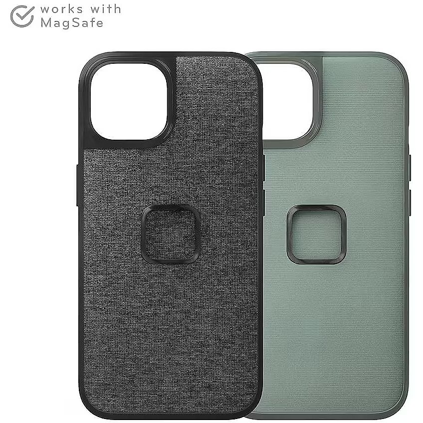 A phone case with the perfect balance of slimness, smart aesthetics, and protection, plus it brilliantly connects to the entire Peak Design Mobile Ecosystem (and MagSafe accessories, too). It's like a tuxedo for your phone—a tuxedo with a slim 2.4 mm profile and protective rubberized bumper, all wrapped in beautiful nylon canvas shell. But what truly sets the Everyday Case apart is the brilliant magnetic/mechanical lock that's built right into it. We call this mounting technology SlimLink™, and it's so fast and secure that it borders on magic. With this case on your phone, you can instantly connect to all Peak Design Mobile mounts, chargers, and accessories. It even works with Apple MagSafe chargers and accessories, too. Unlock the peak design ecosystem Connects to all Peak Design Mobile mounts & accessories Built-in magnetic locking technology (called SlimLink™) is ultra secure and feels like magic Works with MagSafe Compatible with MagSafe accessories & chargers Slim & protective Super-slim 2.4mm profile Rubberized full-surround shock-absorbing bumper Protective lip around screen and camera lenses Rugged 2m (6ft) drop protection Better materials = better case Nylon canvas fabric shell is weatherproof, 100% recycled, and Bluesign-approved Ultralight polycarbonate body Works with peak design straps 2 mounting points for Peak Design Anchors let you tether/carry your phone with any Peak Design strap