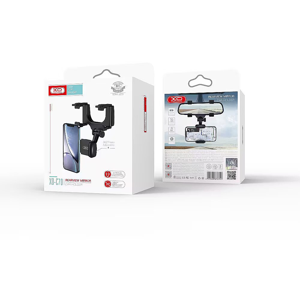 description_en - The XO C70 is a phone holder that is mounted on the car's rearview mirror. This allows the device to be conveniently placed within the driver's line of sight. The holder is made of high-quality plastic, thanks to which it is stable, and its strong clips hold the phone in the desired position. The phone can be placed in the holder both horizontally and vertically. Universal car phone holder Attaches to the rearview mirror of the car Stays firmly even on a bumpy road Compatible with most phones 360° rotatable