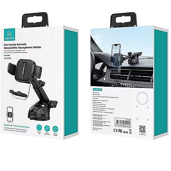 Description - USAMS US-ZJ072 car holder USAMS US-ZJ072 car holder mounted on the dashboard or car windshield - mount it where you currently need it! The holder has a telescopic, extendable arm, thanks to which you can adjust the position of the phone to your needs, in addition, the holder does not limit visibility. You can adjust the holder with one hand, you can adjust the right angle of the phone. The bottom base as well as the mounting arms are covered with non-slip silicone, which protects your phone from falling and damage. The suction cup with a large mounting surface guarantees a strong grip and safety of use.