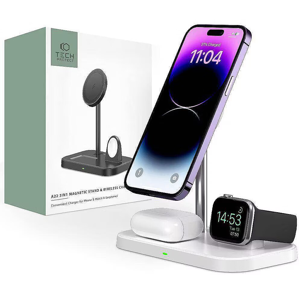 Tech-Protect wireless charger QI15W A22 3in1 Magnetic MagSafe, white