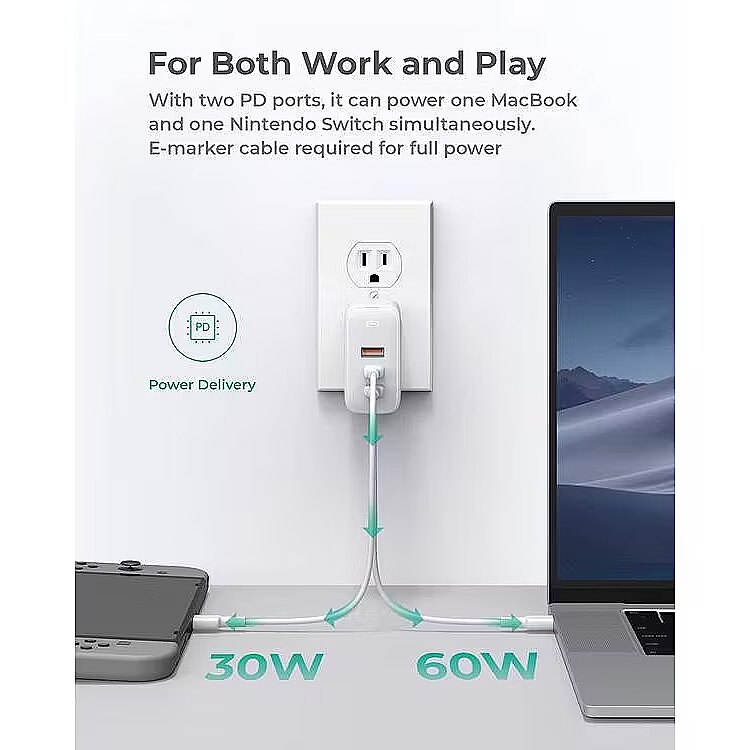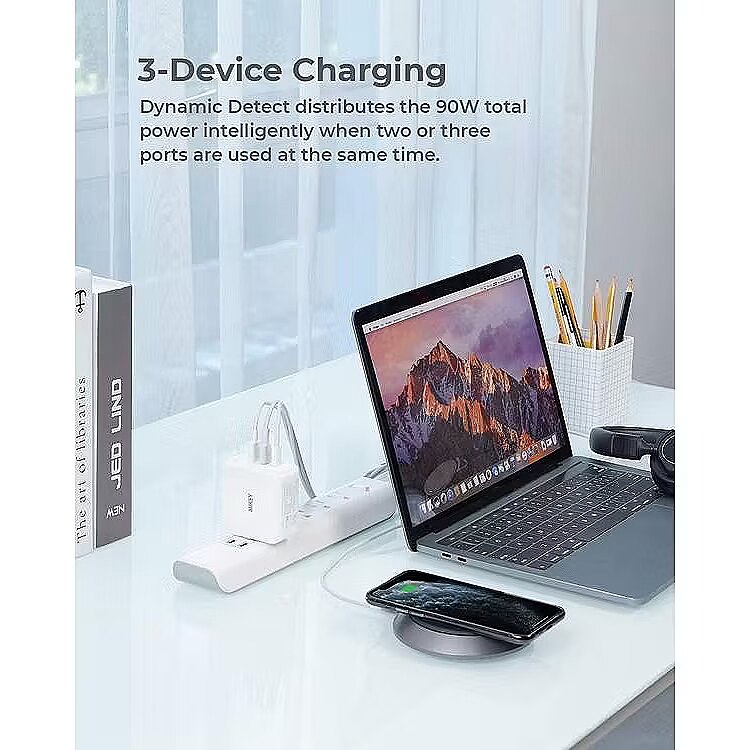 Other features - Input: AC 100240V 50/60Hz 2A Output: USB-C 1/2: 3.3-11V/5A (PPS); 5V/3A, 9V/3A, 12V/3A, 15V/3A, 20V/4.5A (Max 90W) USB-A: 4.5V/5A, 5V/4.5A, 9V/3A, 12V/3A, 20V/3A (Max 60W) USB-C 1 + USB-A: 60W + 30W (Max 90W) USB-A 1 + USB-A 2: 12W + 12W (Max 24W) USB-C 1 + USB-C 2: 60W + 30W (Max 90W) USB-C 1 + USB-C 2 + USB-A: 60W + 12W + 12W (Max 84W) Max Power Output: 90W