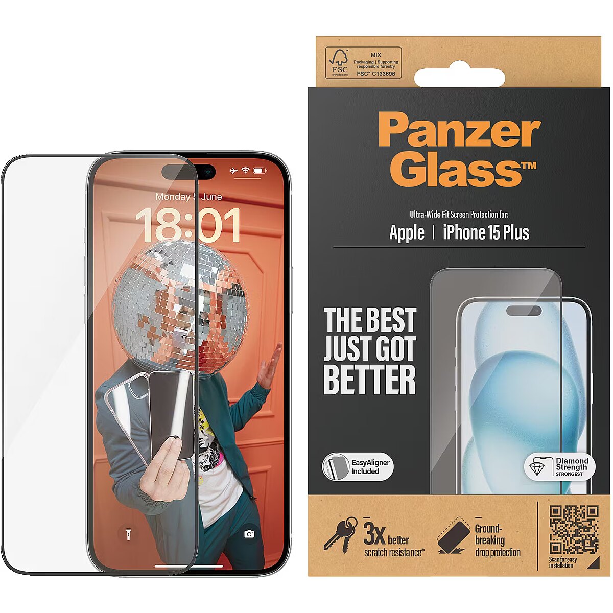 Name - PanzerGlass | Screen protector | Apple | IPhone 15 Plus | Glass | Transparent | Ultra-wide fit, Scratch resistant, Drop protection, EasyAligner included