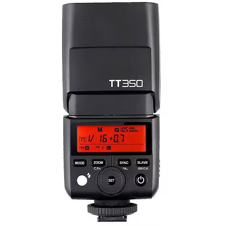 description_en - Flash gun Godox TT350 is a small and light flash gun with a guide number of 36 that fits perfectly with mirrorless and compact cameras. It weighs only 200g and when mounted on the camera and pointing the head forward has only 95mm high. Despite its small size, its flash head rotates 270º horizontally and 97º vertically. This allows a lot of freedom in reflecting the flash light from the ceiling and walls regardless of the camera's orientation of pictures in the portrait and horizontal frame. The lamp has built-in Godox X system transmitter it can be used as a controller (Master) of other lamps using the Godox X system. It is also possible to switch it to the Slave mode, in which it can be controlled remotely from other Godox X transmitter. Flash gun Godox TT350 is equipped with three modes of operation. The first of them (TTL) allows you to shoot with the use of automatic selection of flash light power and work with all the automatic and semi-automatic modes available in cameras. The second option is manual mode with S1 and S2 mode selection. The third mode - strobe (Multi) is great for taking effective photos at longer exposure times. Flash gun Godox TT350 offers the ability to sync flash with ultra-fast shutter speeds up to 1 / 8000s ( HSS ). This option is especially appreciated by people who want to use the lamp during outdoor sessions, where very often you have to face intense ambient light. Built-in zoom in manual and automatic mode works in the range of 24-105mm. If you need to illuminate a wider plan, you can use the wide-angle diffuser built into the head, which corresponds to a focal length of ~ 15mm. In addition, the lamp is equipped with a reflector. In addition, the set comes with an additional light softening cover, which will be useful, e.g. when taking pictures with the torch pointing straight ahead. The factory set is completed with a stand and a handy cover. The battery compartment has a micro USB connector, which is used to update the firmware of the lamp.