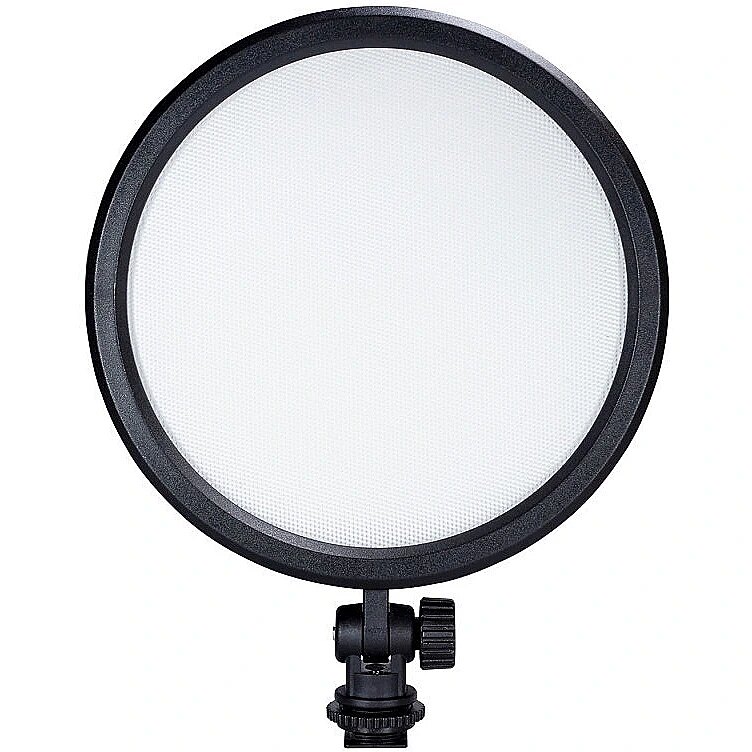 description_en - Round LED light with 120 bright LEDs, variably adjustable color temperature from 3,200-5,600K, CRI> 93 and dimmable brightness. Thanks to its low weight, the LED 120VCR can be used directly on the hot shoe of the camera and serves as a fill-in light for video or product photos. In addition, the video surface light can be mounted on a separate tripod, e.g. as a practical side light for illuminating the subject. A tiltable foot on the LED 120VCR ensures optimal alignment. A display on the back of the area light shows the power selected via the setting wheel and the current color temperature. In addition, the performance level of the attached battery can be called up in percent. Power supply via power supply or battery type Sony NP-F possible (both available as separate accessories). Technical data Voltage: 6.8–12 V Power: 13 W LEDs: 120 Color temperature: 3200–5600 K CRI: 93+ Diameter: 16 cm Weight: 240 g