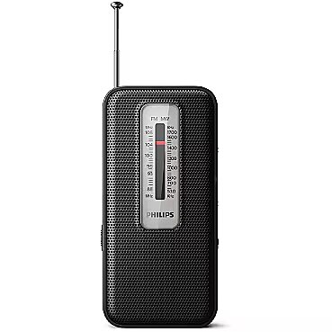 LongDesc - Philips The Pocket Classic Analog Portable FM/MW Radio is easy to tune on the go. Simply turn the side-mounted tuning wheel to slide the indicator along the scale. A large traditional-style tuning window makes it easy to see when you have reached the desired frequency. One-handed operation is easy with this little radio. Volume and on/off are both controlled by a conveniently placed thumbwheel. There's a headphone port for private listening and a side-mounted switch to select FM or MW signals. Slip this radio into your pocket and take the news wherever you go. Or the game you just can't miss. or the talk show you love. 2x AAA batteries power the sound and a telescopic antenna ensures you'll always get the best possible reception.