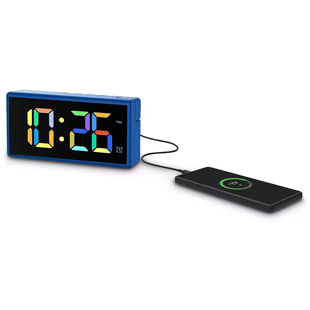 Cztery poziomy jasności wyświetlacza sprawiają, że możesz komfortowo korzystać z budzika zarówno w ciągu dnia, jak i w nocy. Tryb wyłączenia ekranu podczas ładowania urządzeń przez USB zapewnia spokojny sen bez zbędnych rozproszeń.