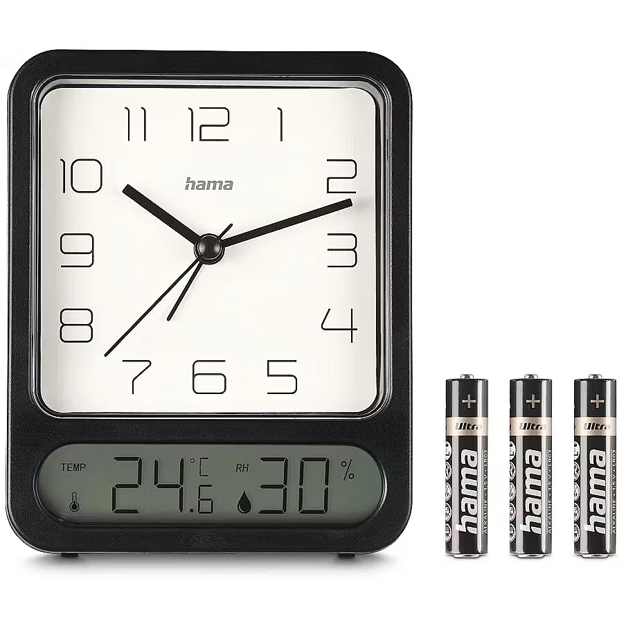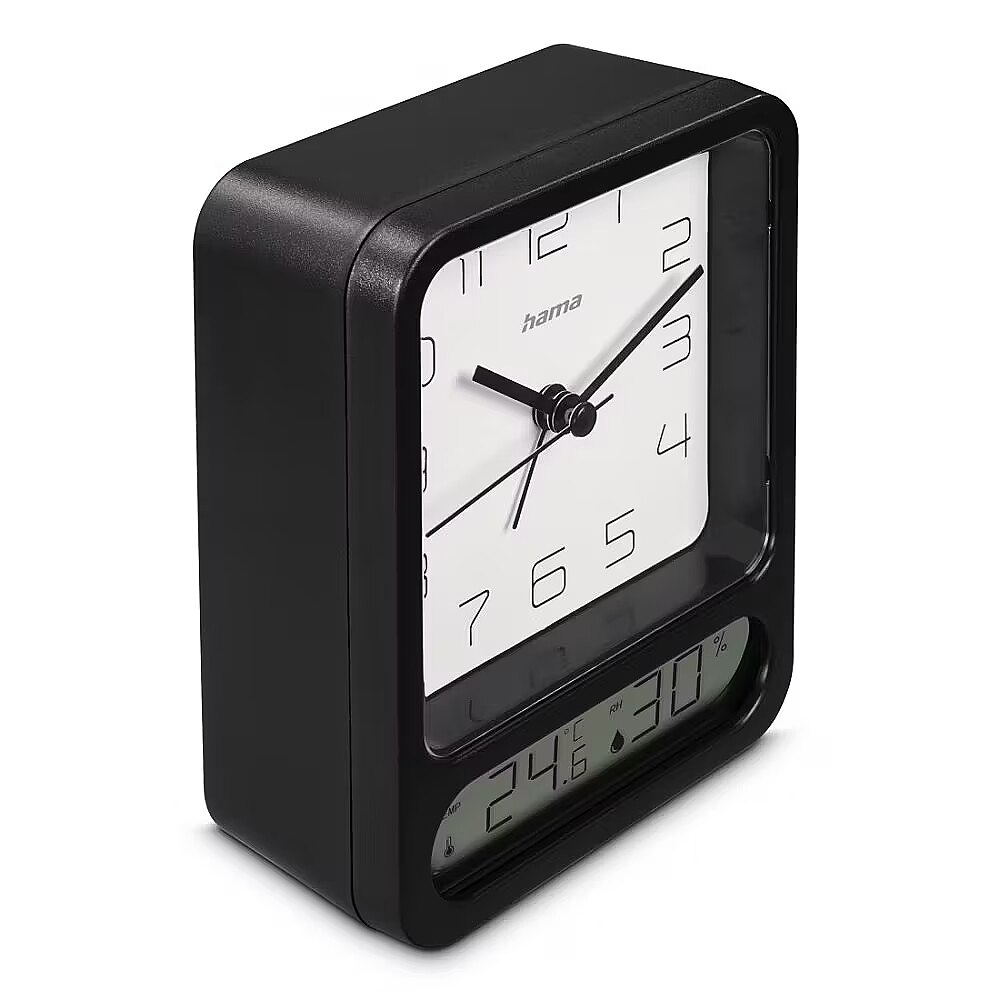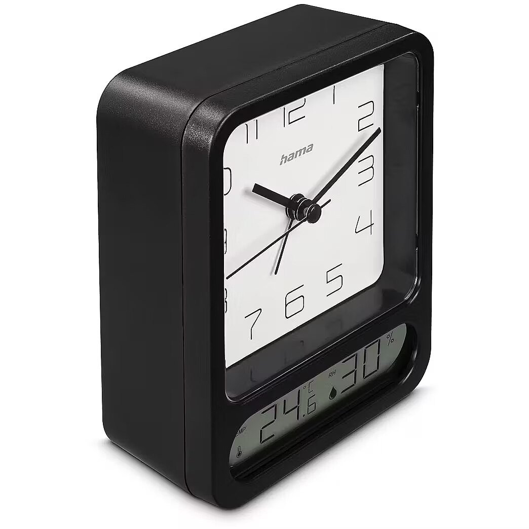 URL - https://www.hama.com/00222223/hama-pag-alarm-clock-with-thermometer-hygrometer-no-ticking-black