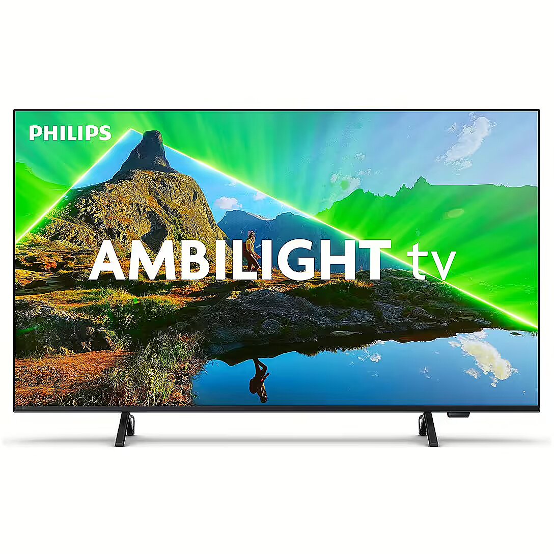 Description - 4K Ambilight TV Are you looking for more from your next TV? This 4K UHD Ambilight TV delivers razor-sharp images, Dolby Atmos sound and the amazing Ambilight system. Epic gaming, cinematic movie scenes and even a light show for your music! Compatible with voice assistants. You have your choice of voice assistants! Press the Alexa button on your remote and you can use your voice to search for movies and shows, get recommendations, control compatible smart home devices and more. You can also control your TV with Google smart speakers. Immerse yourself in what you love. Ambilight TV. Ambilight TVs are the only TVs with built-in LED lighting behind the screen that responds to what youre watching, immersing you in a halo of coloured light. Your TV feels bigger and takes you deeper into your favourite shows, movies and games. Incredibly sharp and vibrant images. A 4K (UHD) LED TV with Ambilight lets you enjoy watching shows to the fullest. The Philips Pixel Precise Ultra HD engine in the TV optimizes picture quality, ensuring that it is razor-sharp, with rich colors and smooth motion. This guarantees the best possible viewing experience. Easy searching with TITAN OS. Our intelligent TV platform TITAN OS makes it quick and easy to find your favorite show. Love series? Continue watching directly from the home screen. And if youre looking for something new, you can browse categories like action movies or dramas and see recommendations from the best streaming services all in one place. Dolby Atmos cinematic sound Dolby Atmos provides an immersive experience by placing sounds in the space around and above the viewer. Whether its a spaceship flying overhead or footsteps sneaking up behind you, youll be right at the center of the action. Great for gaming. VRR and low input lag on any console. HDMI 2.1 lets you take full advantage of your console with fast gameplay and smooth graphics. The device supports VRR technology, the low latency setting is automatically activated when you turn on the console. Ambilight game mode makes the experience even more intense. Remote control made from recycled plastic. Responsible packaging. The slim stand of this Ambilight TV is high enough to fit a soundbar underneath, and you can use Ambilight to create instant mood lighting when you're not watching TV. The TV remote control is made from recycled plastic, our packaging is made from FSC-certified recycled cardboard, and the inserts are printed on recycled paper.