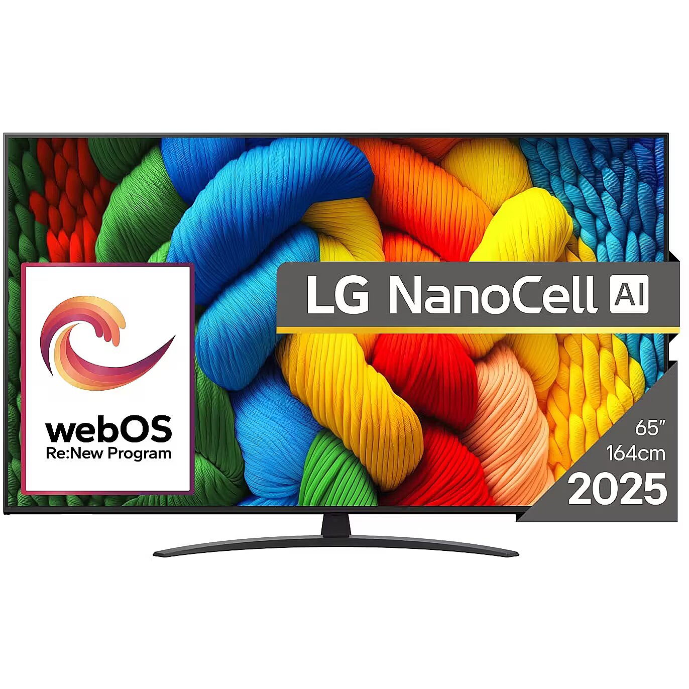Summary - LG NanoCell AI 65NANO81A3A. Display diagonal: 165.1 cm (65"), Display resolution: 3840 x 2160 pixels, HD type: 4K Ultra HD, Display technology: NanoCell, Screen shape: Flat, LED backlighting type: Direct-LED. Smart TV. Native aspect ratio: 16:9. Digital signal format system: DVB-S, DVB-S2, DVB-T, DVB-T2. Wi-Fi, Ethernet LAN. Product colour: Black