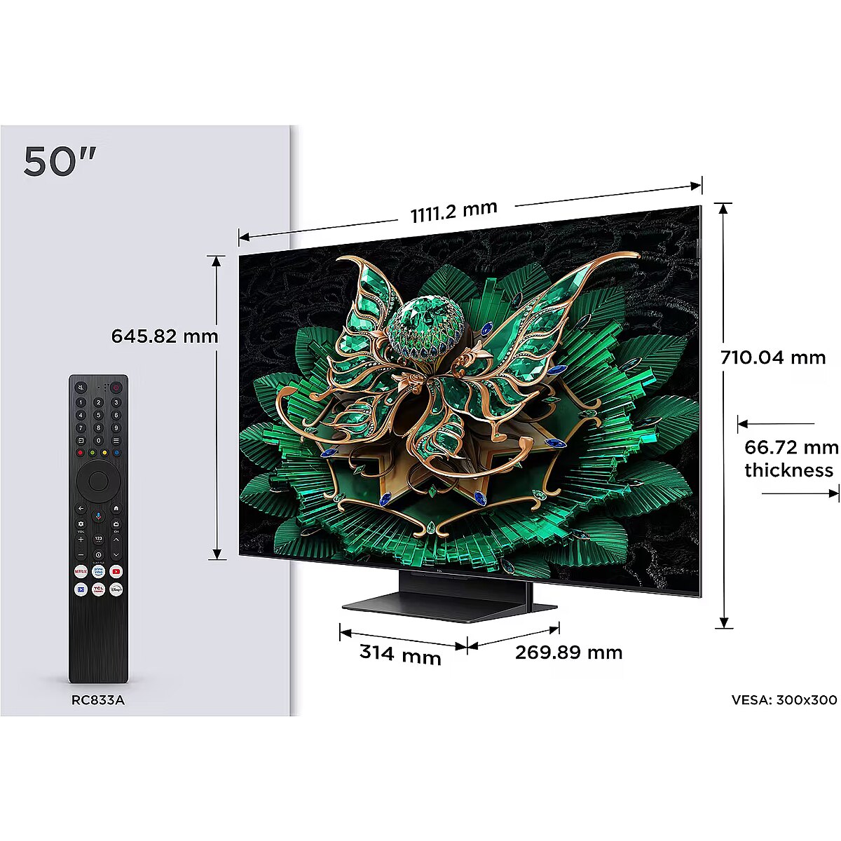 ShortSummaryDescription - TCL 50C7K, 127 cm (50"), 3840 x 2160 pixels, QD-Mini LED, Smart TV, Wi-Fi, Metallic