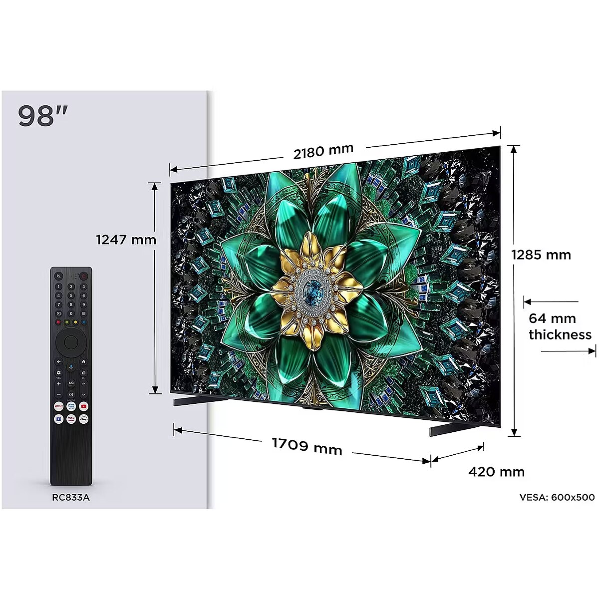 ShortSummaryDescription - TCL Q6C 98Q6C, 2.49 m (98"), 3840 x 2160 pixels, QD-Mini LED, Smart TV, Wi-Fi, Metallic