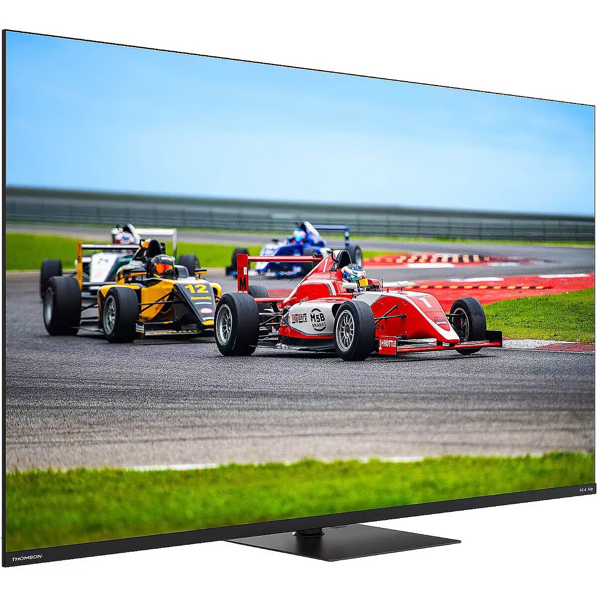 Description - Enjoy your favorite entertainment in stunning 4K UHD quality with your Thomson Google TV 65" QLED. Powered by Quantum Dot nanocrystals, a QLED display delivers balanced brightness, striking contrasts, and an expanded color range. Combined with 4K Ultra HD resolution you can capture every detail and immerse yourself in crystal clear images. Dolby Vision technology enhances the brightness in each scene, ensuring precise color reproduction for lifelike images. Enjoy dynamic audio with Dolby Atmos for an immersive TV experience. Google TV simplifies your entertainment experience by organizing content from your apps and subscriptions. Create multiple user profiles and benefit from curated recommendations. Enjoy a wide range of smart features, such as access to 400,000+ movies and TV shows, smart voice control with Google Assistant, and Google Cast to stream content from compatible smart devices to your TV. The ergonomic remote control with smooth backlighting allows you to keep an eye on everything, even in dim lighting. The integrated Google Assistant enables you to intuitively control your TV with voice commands. Search for your favorite movies, ask for recommendations based on your mood, or control compatible smart devices - all with the convenience of your voice. Benefit from increased placement flexibility with the central swivel stand and enhance your viewing experience. The innovative design enables you to effortlessly rotate your TV by up to 30 degrees, allowing you find the perfect angle for your entertainment setup. The built-in triple tuner allows reception via satellite-antenna, terrestrial antenna, or cable. So, you can receive all available channels without additional hardware.