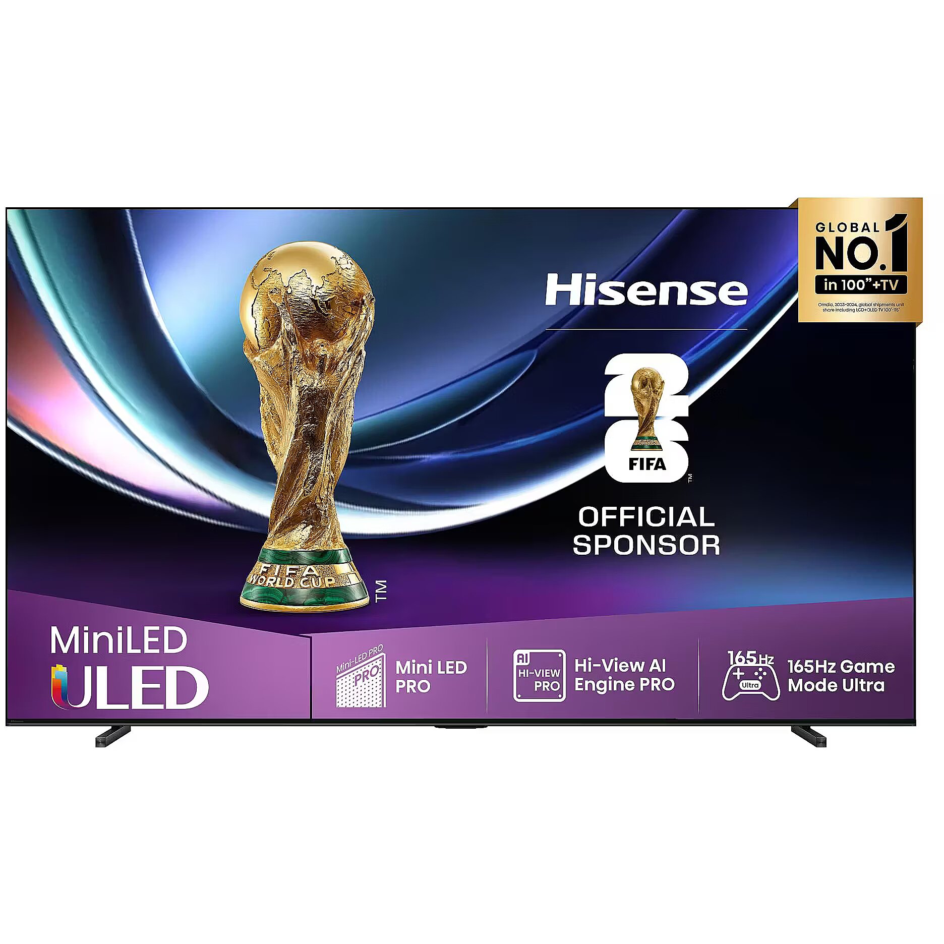 Description - Mini-LED PRO Truest darkness and stellar brightness Every frame comes to life on your screen with outstanding contrast and brightness. The precise backlight control ensures you won't miss any details, no matter dark or bright. Hi-View AI Engine PRO AI master of every perfect frame Hi-View AI Engine PRO is an expert in scene recognition. It detects and analyses data like skin tones, depth, and graphics for every frame with extreme accuracy, bringing out vibrant, true-to-life visuals. Even ordinary visuals become extraordinary. 165Hz Game Mode Ultra Native 165Hz VRR, ready for next-gen gaming Unleash the gaming power of Hisense TV with 165Hz Game Mode Ultra, always stay ahead of the game. Be prepared for the next-generation gameplay and extremely smooth gaming visuals. 2.1.2 Multi-Channel Surround Refined sound from all angles There's more to hear than you might expect. Richer depths and crisper heights of 2.1.2 Multi-Channel Surround. No extra equipment, unearth more hidden details like never before. Anti-Reflection Minimal light intrusion Hisense’s Anti-Reflection is designed to minimize glare and reflections. Enjoy clear, vibrant visuals in any lighting conditions, ensuring your viewing experience remains pristine and true to the creator’s vision. QLED Colour With Pantone Billion+ shades of vivid colour Discover breathtaking QLED Colour! Pantone-validated for true-to-life hues, delivers richer shades, deeper immersion, and an experience so vivid, you're living it. AI Chroma Light Sensor The perfect picture everywhere and always Whether it's a bright sunny day or rouge winter evening, AI Chroma Light Sensor automatically senses and adjusts brightness and colour temperature, for a picture that matches the moment. Always the right ambiance, always the best view. Total HDR Solution See your beloved content in incredible details Unlock the potential of every HDR format, including Dolby Vision IQ, HDR 10+Adaptive, HDR 10, HLG, resulting in perfect details, enriched colours, and deep contrast. AI HDR Upscaler Visuals upgraded to HDR-like quality Hisense TVs boast advanced AI detection and contrast enhancement technologies. SDR content can be refined to HDR-like quality with perfect details, enriched colours and deep contrast. AI 4K Upscaler Fuzzy images are upscaled close to 4K quality Hisense's Al 4K Upscaler unlocks superior clarity for all your favourite content. This smart feature reshapes not only your cherished classics and home movies, but also modern TV broadcasts, movies, and even streaming content into stunning 4K quality. Every pixel is elevated to the power of your TV. AI Scenario AI real-time scenario-specific optimization Escape complex settings while enjoying the best-matching picture modes that switch in response to on-screen content, whether it's movies, sports, or games. AI Sports Mode Stadium-level entertainment AI Sports Mode leaps to the rescue of blurry movements in sports. The tailored mode creates truly stadium-like sports scenes, making every detail of the game crystal-clear. It also enhances sound effects of even the crowd and commentator's voices. Solar Powered Remote Eco-conscious control at your fingertips Harness the power of ambient light with Hisense’s Solar Remote — a device designed to stay charged through both natural light and a USB-C cable. This innovative design champions sustainability by reducing electronic waste, while its energy-efficient operation keeps costs low. Elevate your TV experience and make a positive environmental impact, all without compromising convenience. Dolby Vision.Atmos See. Hear. Spectacular. The fusion of Dolby Vision HDR imaging and Dolby Atmos® sound transforms your TV into an entertainment powerhouse. These image and sound technologies from the cinema, now brought together for the home, provide amazing realism that you’ll see, hear, and feel like never before. Dolby Vision is cinema-inspired HDR technology that brings your TV to life with dramatic imaging — astonishing brightness, colour, contrast, detail, and dimensionality. Dolby Atmos puts you inside the action with bigger, more encompassing sound that fills your room — even overhead — to immerse you in your entertainment. Now, with total ease and convenience, lifelike image and sound leap from the screen to make your home entertainment truly spectacular. IMAX Enhanced Unleash the power of IMAX at home IMAX quality cinema need not be out of reach. Hisense’s IMAX Enhanced TVs are certified by the IMAX corporation and Hollywood’s leading technical specialists to deliver IMAX’s signature brand picture quality and DTS®-powered audio immersion from the comfort of your own home. Dive deeper into the worlds most innovative movie-going experience for an immersive audiovisual experience. Filmmaker Mode Watch your movies and TV shows the way the filmmakers intended Experience the message as it was intended with Filmmaker Mode. Adjust your video to its original settings to see details like the sound, aspect ratio, colour, frame rate, and more as it was originally envisioned for the most authentic display of your favorite filmmaker’s masterpiece, before it was altered for generic viewing. Game Bar Seamless gaming management at one stop Enjoy your gaming dashboard and manage your perforamce in real-time. You are able to adjust the gaming options and monitor the gameplay data seamlessly. Lead with precision, and play to win. Hi-Concerto
