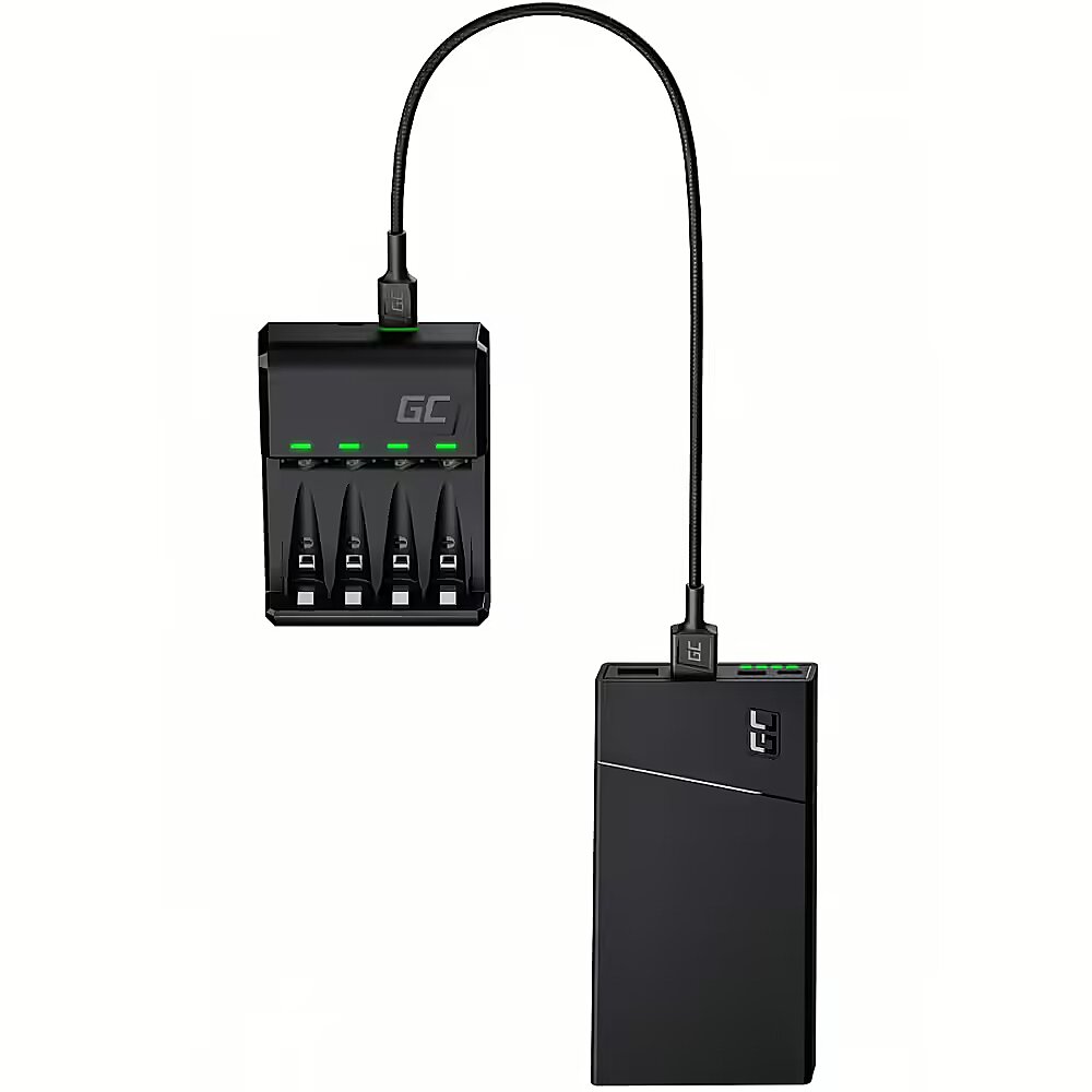Description - Dzięki uniwersalnej ładowarce do akumulatorków GC VitalCharger wyposażonej w porty Micro i USB-C zapewnisz swoim urządzeniom nieprzerwany dostęp do energii. Wszędzie. Zrezygnuj z jednorazowych baterii alkalicznych i przyczyń się do ochrony środowiska. Cechy VitalCharger Porty Micro USB i USB-C Diody LED poinformują Cię na jakim etapie ładowania jest każdy z akumulatorków. Skomponuj swój własny zestaw i ładuj jednocześnie od jednego do czterech akumulatorów AA lub AAA. Przemyślana konstrukcja zapobiega wypadaniu paluszków oraz umożliwia ich łatwe wkładanie i wyjmowanie. Wytrzymała obudowa z tworzywa ABS wyposażona w antypoślizgowe elementy. GC VitalCharger możesz używać z dowolnym źródłem zasilania, niezależnie czy dysponujesz ładowarką sieciową, samochodową, laptopem czy power bankiem. Podłącz ją do portu USB, a proces ładowania rozpocznie się automatycznie.