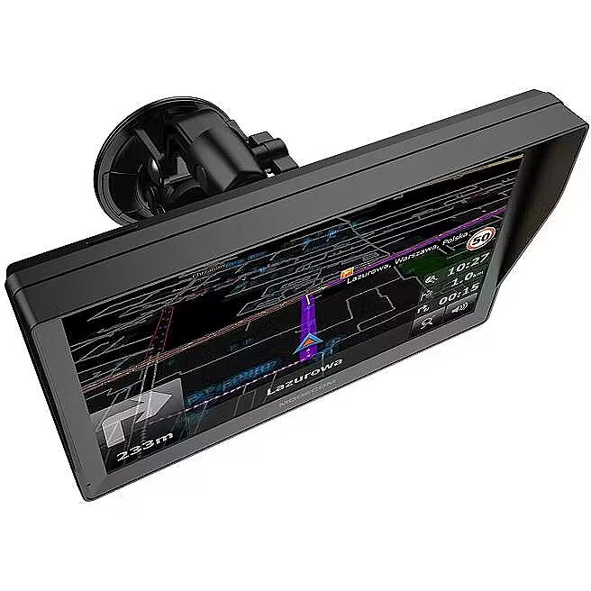 The navigation works great primarily in delivery vans, minivans, trucks, etc. The large screen allows you to precisely follow the route even on a sunny day. The sun visor provides additional protection against blinding sunlight.