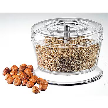 LongDesc - Do you need finely ground hazelnuts for the nut cake? Do you need finely chopped juniper berries and mustard seeds for the spicy game marinade? Do you need finely ground chocolate as a topping for the dessert? Do you need to process the delicious Parmesan cheese into fine flour for the spaghetti carbonara? Well, the ESGE chopper is responsible for these kitchen questions! The ESGE chopperis compatible with all ESGE magic wands® except models with 350 watts of power (Gastro and Maître) and transforms food into sprinkleable ingredients in no time at all. Simply fill in the food to be chopped, put the lid on and put on the ESGE magic wand®. Start the magic wand and finely ground food is available in no time! Because the container is transparent, you can always see the grinding level and stop when the desired consistency is achieved.The two-bladed stainless steel blade chops everything up in no time at all and the rubber ring underneath the container gives the chopper a secure footing, so nothing slips even at high speeds. After use, the blade can be easily removed for cleaning - it couldn't be more convenient!