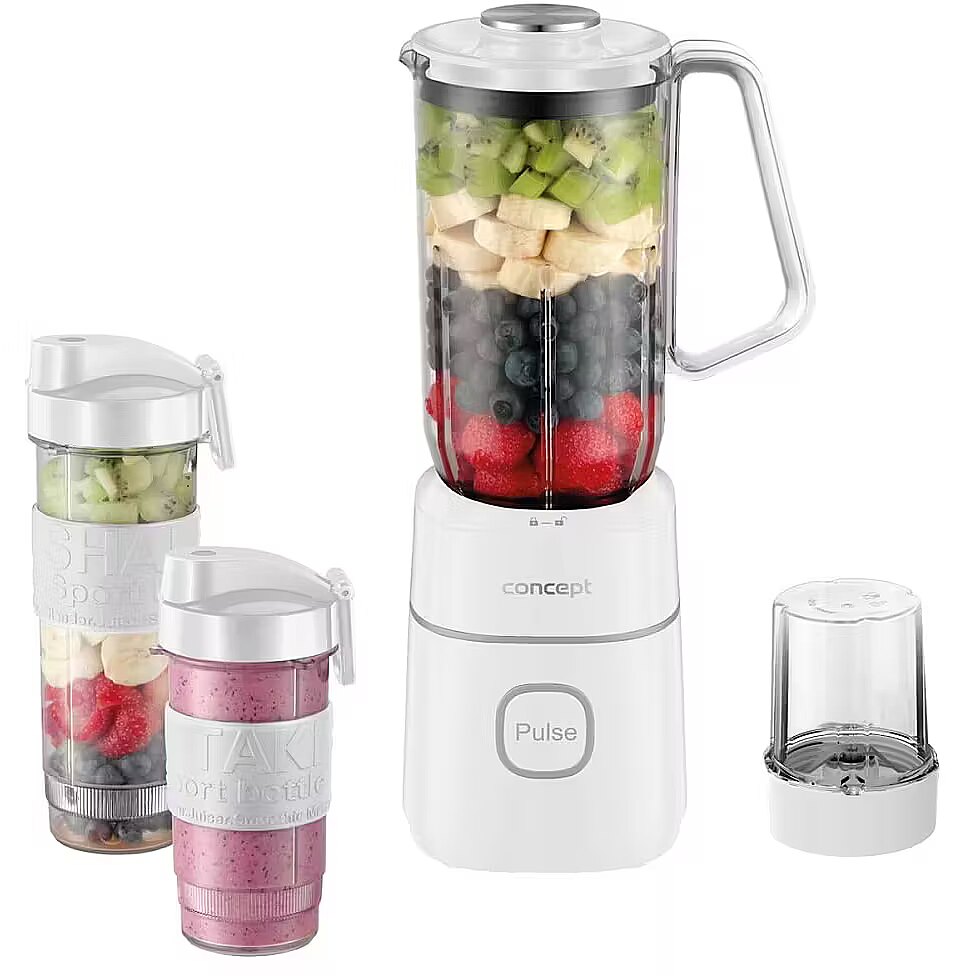 Accessories included - Pojemnik do miksowania z tritanu: 1000 ml 2 x Butelka do miksowania z tritanu: 570 ml, 400 ml Młynek do przypraw/kawy Zestaw TO GO - silikonowy uchwyt i pokrywki z zaczepem