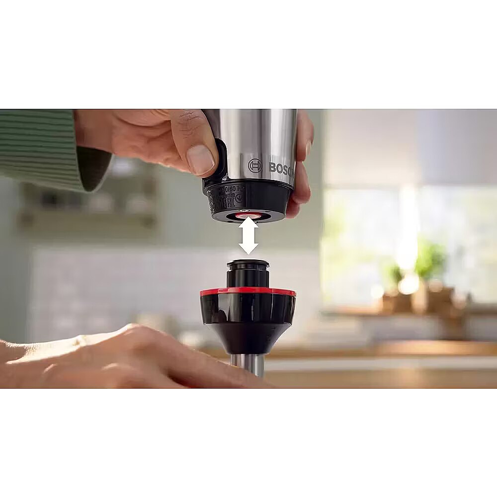 MediumDescription LV - Bosch ErgoMaster rokas blenderis ir jaudīgs un izturīgs virtuves palīgs, kas piemērots gan ikdienas gatavošanai, gan sarežģītākām receptēm. Pārdomātais dizains un dinamiskā ātruma regulēšana nodrošina precīzu kontroli, savukārt daudzpusīgie piederumi sniedz plašākas iespējas dažādu ēdienu pagatavošanai. Izstrādāts ilgstošai veiktspējai un uzticamiem rezultātiem katru dienu. • Klikšķa mehānisms – blendera uzgali iespējams noņemt ar vienu klikšķi ērtai un ātrai tīrīšanai• Virtuves kombaina uzgalis – universāls risinājums smalcināšanai, rīvēšanai un griešanai šķēlēs• Praktisks maisīšanas/mērtrauks – ērta mazāku porciju mērīšana un blendēšana• Ar gaisu dzesēts motors – samazina pārkaršanas risku un nodrošina stabilu darbību