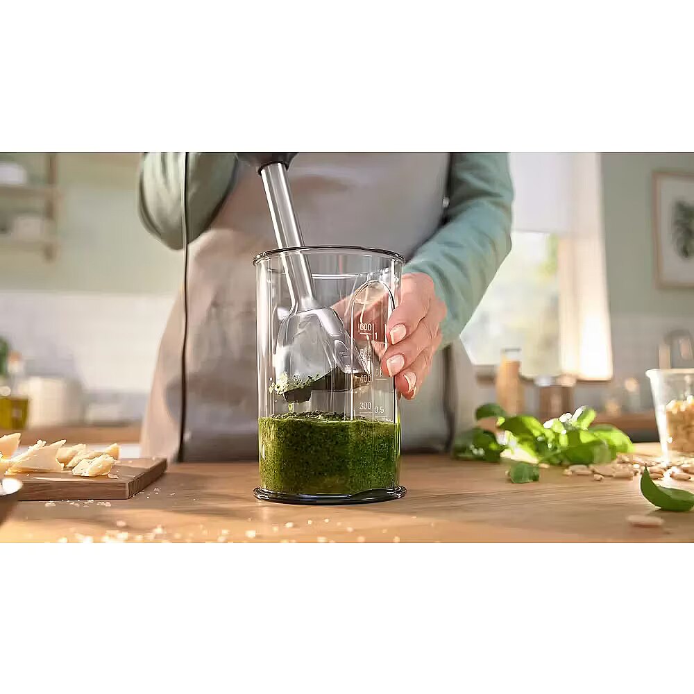 ErgoMaster Series 6 hand blenders let you experience the most comfortable and high-performance way to create amazing dishes. From the innovative and intuitive speed control to its excellent blade technology. Get ready for a new level of cooking experience with well-matched details and discover fast and effective blending. The power of the air-cooled high-performance motor is consistently transmitted to blades without wear-out. Included accessories