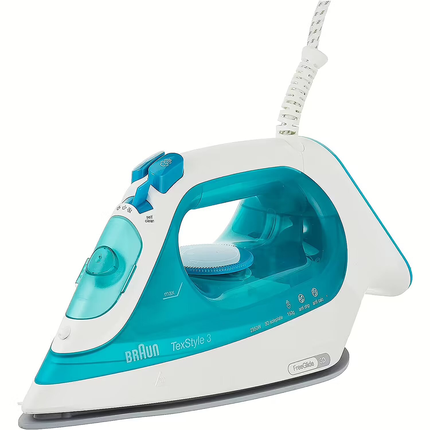 ShortSummaryDescription - Braun SI 3041 GR, Steam iron, Ceramic soleplate, 2 m, 150 g/min, Turquoise, White, 45 g/min