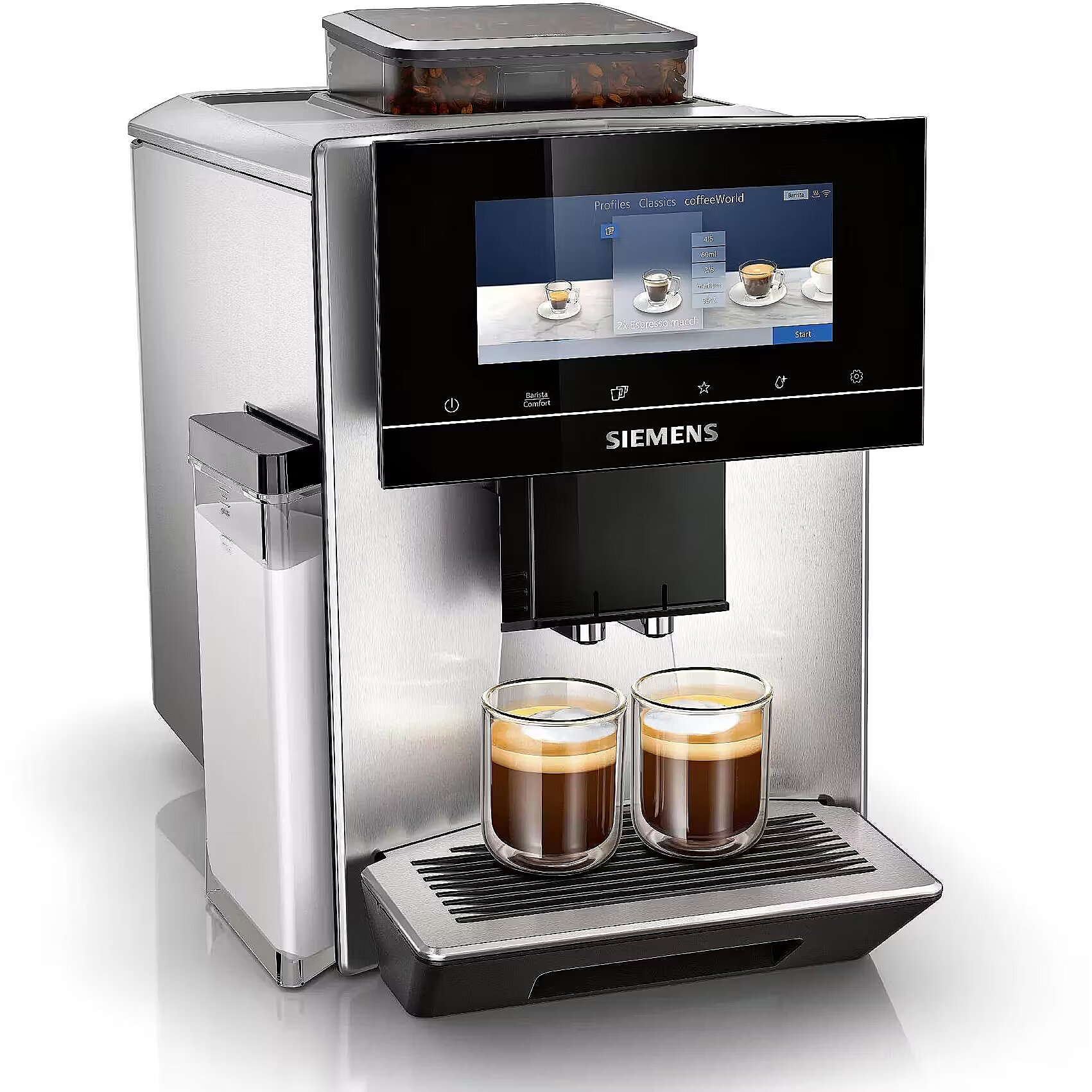 LongDesc - Pełna kontrola nad przygotowywaną kawą - baristaMode.Aby kawa była tak wyrafinowana, jak lubisz: baristaMode oferuje indywidualną i precyzyjną kontrolę nad odpowiednimi parametrami parzenia: ilością wody i kawy, stopniem zmielenia, czasem parzenia, temperaturą i ilością mleka, które można ustawić za pomocą intuicyjnego wyświetlacza dotykowego iSelect. Dzięki temu możesz mieć pełną kontrolę nad smakiem swojej kawy.Łatwa nawigacja na wyświetlaczu dotykowym - wyświetlacz iSelect.Intuicyjna obsługa na doskonałym poziomie. Jeszcze nigdy dostosowanie kawy do własnego smaku i preferencji nie było tak proste. Wyświetlacz iSelect i jego funkcje touch & slide sprawiają, że dostosowanie kawy do preferowanych niuansów smakowych jest niezwykle proste.Ciesz się chwilą ciszy i przyjemności z Twoją kawą - superSilentDzięki technologii superSilent przy każdym włączeniu ekspresu możesz odprężyć się w ciszy i spokoju, podczas gdy urządzenie zaparzy twoją kawę. Zaawansowana konstrukcja urządzenia, obejmuje zoptymalizowaną izolację akustyczną i specjalne uszczelki, które maksymalnie redukują dźwięki wydobywające się z ekspresu podczas pracyIdealnie zmielone ziarna kawy - eGrindereGrinder daje Ci pełną kontrolę nad parametrami mielenia każdego napoju, który chcesz przyrządzić. Wybierz indywidualnie preferowany poziom mielenia, aby nadać swojej kawie najlepszy smak w każdej chwili, za jednym dotknięciem palca.Perfekcyjnie połączony z własnym ekspresem - Home ConnectTeraz Twój ekspres do kawy jest Twoim osobistym baristą. Złóż zamówienie siedząc przy stole w salonie, z łóżka czy tarasu i ciesz się swoją ulubioną kawą lub sporządź całą listę napojów dla wszystkich gości. Specjalna włoska kawa, indyjska Kappi lub australijska Flat White - wybierz spośród klasycznych napojów i 21 dodatkowych przepisów na napoje z całego świata. Stań się entuzjastą kawy, naucz się nowych rzeczy bezpośrednio z aplikacji i rozkoszuj się nowymi doznaniami aromatu.Pełnia funkcjonalności w połaczeniu z perfekcyjnym kształtem - SiemensSiemens zapewnia doskonałą funkcjonalność w harmonii z estetycznym wzornictwem. W pełni automatyczne ekspresy do kawy firmy Siemens przekonują nie tylko innowacyjnością i doskonałymi parametrami, ale także eleganckim wyglądem.Dla otrzymania ekstra-mocnej kawy: aromaDouble Shot.Ekstra-mocna kawa bez kompromisów w kwestii aromatu, dzięki innowacyjnej funkcji aromaDouble Shot. Funkcja aromaDouble Shot obejmuje dwa procesy mielenia i parzenia, aby zawsze wydobywać najlepszy aromat. Ten automatyczny proces zapewnia, że kawa jest pozbawiona gorzkiego posmaku, ponieważ mniejsza ilość wody oznacza mniej uwolnionej goryczy — dzięki temu do Twojej filiżanki trafia tylko to, co najlepsze w ziarnie.Automatyczne czyszczenie układu mlecznego - autoMilk CleanKażdy amator aromatycznej kawy chętnie celebruje jej parzenie, ale czyszczenie systemu spieniania mleka jest zwykle ponad jego siły. Nowy, opracowany przez markę Siemens system autoMilk Clean kładzie temu kres. Ten w pełni automatyczny, parowy system czyszczenia aktywuje się po każdym parzeniu kawy z mlekiem, zwalniając użytkownika z codziennego mycia modułu spieniania mleka. Ekspres sam utrzymuje idealną higienę, a Ty możesz bez przeszkód serwować pyszne kawowe kompozycje z mleczną pianką.Perfekcyjne rozwiązanie dla najlepszego smaku - iAroma SystemDzięki systemowi iAroma w pełni automatyczne ekspresy do kawy Siemens zapewniają zawsze najlepszą jakość każdego napoju. Jest to innowacyjny system, w którym wszystkie komponenty płynnie współpracują w celu osiągnięcia jednego ostatecznego celu: przyjemnościZaparz dzbanek kawy używając odpowiedniej funkcji.Twoi przyjaciele odwiedzili Cie i musisz przygotować dla nich pyszną kawę? Dzięki funkcji "dzbanek kawy" możesz przygotować dużą ilość kawy w jednym cyklu. Ciesz się cudownymi chwilami z przyjaciółmi i rodziną pijąc doskonałą kawę.