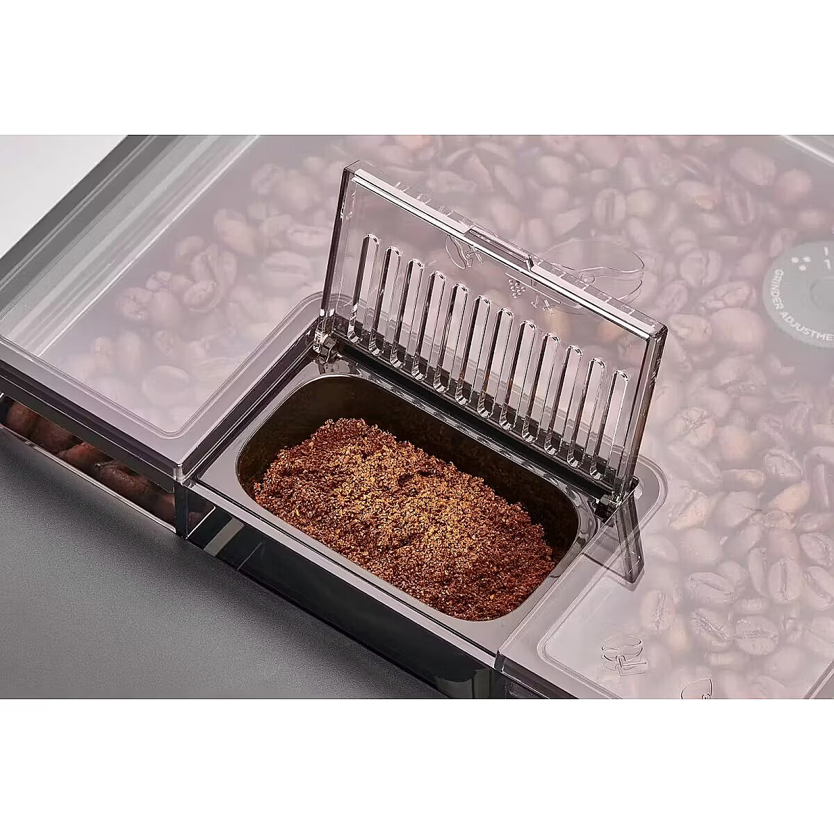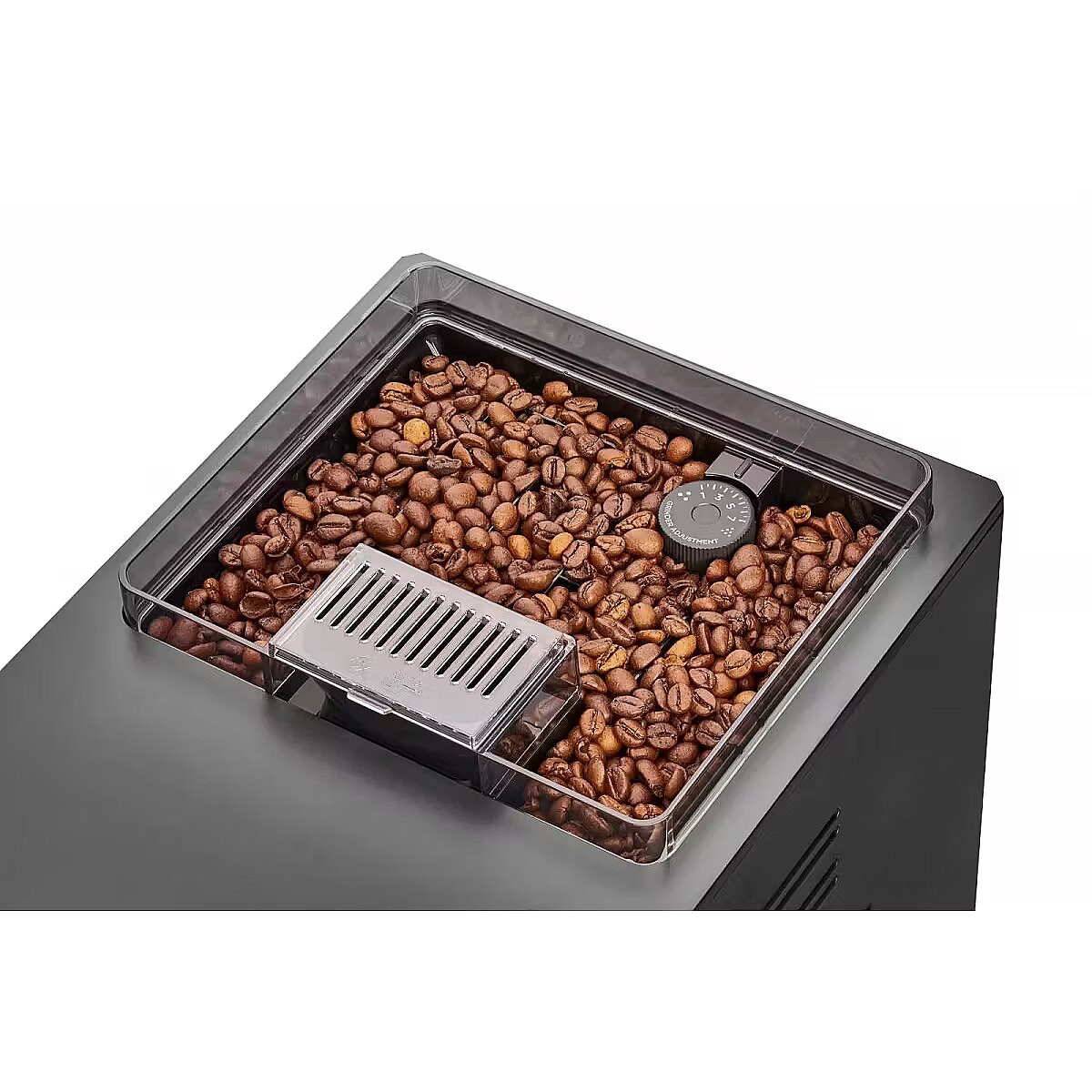 5 poziomĂłw mielenia ziarna pozwala na przygotowanie napoju o oczekiwanej intensywnoĹci. Regulacja iloĹci zaparzanej kawy