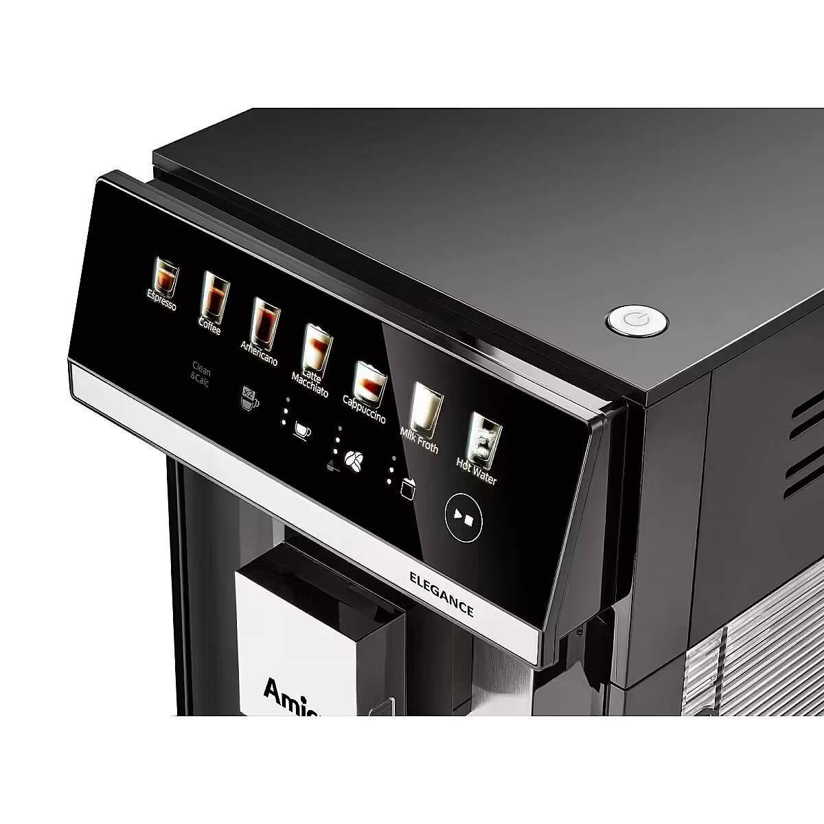Special functions - Regulacja stopnia zmielenia kawy Dotykowy panel sterowania Regulacja iloĹci kawy Regulacja mocy kawy Regulacja temperatury kawy Przygotowanie kaw mlecznych Programy: Coffee, Americano, Cappuccino, Espresso, Caffe Latte, Latte Macchiato, Hot milk, Frothed milk, Hot water, Ulubiona Kawa Funkcja: 2 filiĹźanki kawy Funkcja spieniania mleka Regulacja wysokoĹci dyszy Wyjmowany zbiornik na wodÄ Odpinany pojemnik na mleko Wyjmowany blok zaparzajÄcy Autoczyszczenie Automatyczne wyĹÄczenie WskaĹşnik "Gotowy do pracy" WskaĹşnik odkamieniania Program odkamieniania WskaĹşnik niskiego poziomu wody WskaĹşnik niskiego poziomu mleka WskaĹşnik napeĹnienia pojemnika na fusy WskaĹşnik braku kawy Wymienny filtr w zbiorniku na wodÄ WskaĹşnik braku pojemnika na wodÄ WskaĹşnik koniecznoĹci wymiany filtr