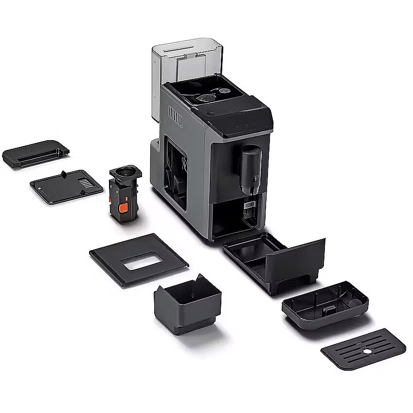 Other features - Informacje dotyczące czyszczenia: wyjmowany zbiornik na wodę, miska i kratka odciekowa, wyjmowany moduł parzenia kawy, wyjmowany pojemnik na fusy