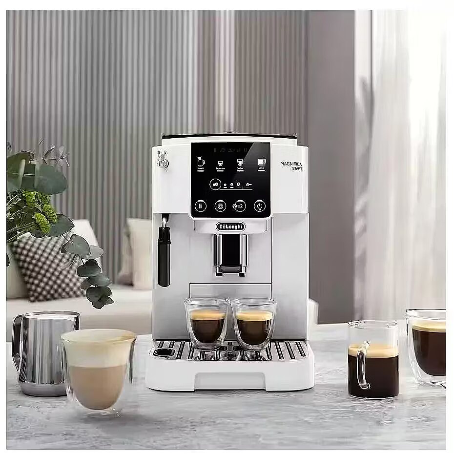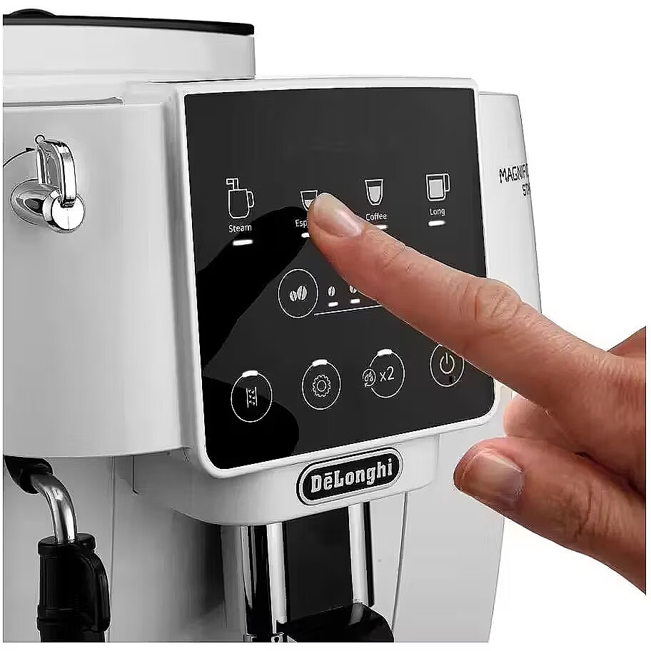 MediumDescription EN - Enter the world of bean-to-cup coffee with De'Longhi Magnifica Start, providing everything you need to get started with your favourite espresso-based drinks at home. It features a user-friendly interface and eye-catching white finish, with a customised selection of beverages delivered with just one touch. • Intuitive control panel with touch buttons for an easy interaction