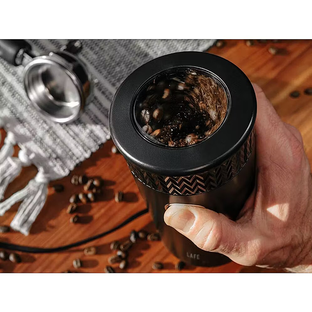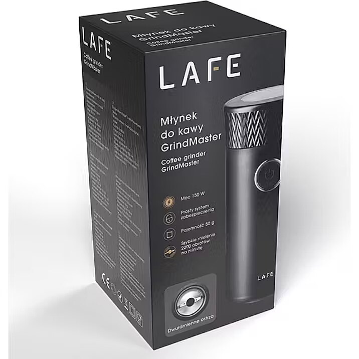 Description - Młynek do kawy LAFE GrindMaster to idealny wybór dla miłośników kawy, którzy cenią sobie najwyższą jakość i aromat świeżo zmielonej kawy. Prosta obsługa Dzięki prostemu w obsłudze interfejsowi użytkownika, możesz w łatwy sposób mielić swoją ulubioną kawę. Wystarczy włożyć ziarna kawy do komory mielenia, zamknąć pokrywkę i nacisnąć przycisk. Solidna metalowa konstrukcja Noże i komora mielenia wykonane są ze stali nierdzewnej, co zapewnia długą żywotność i łatwe czyszczenie. Pojemna komora mielenia Komora mielenia pomieści około 50 g kawy, co jest wystarczającą ilością do przygotowania kilku filiżanek aromatycznej kawy. Bezpieczna konstrukcja Dodatkowym atutem urządzenia jest zabezpieczenie przed włączeniem bez pokrywki, co zapewnia bezpieczeństwo użytkowania. Jeśli szukasz niezawodnego i solidnego młynka do kawy, który pozwoli Ci cieszyć się pyszną kawą w domowym zaciszu, to ten produkt spełni Twoje oczekiwania.