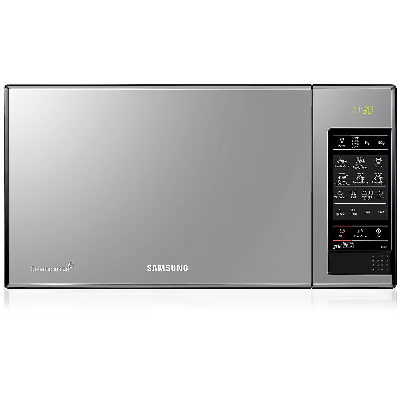 LongSummaryDescription - Samsung GE83X. Appliance placement: Countertop, Product type: Grill microwave, Interior capacity: 23 L, Microwave power: 800 W, Built-in display, Display type: LED, Control type: Buttons, Product colour: Silver