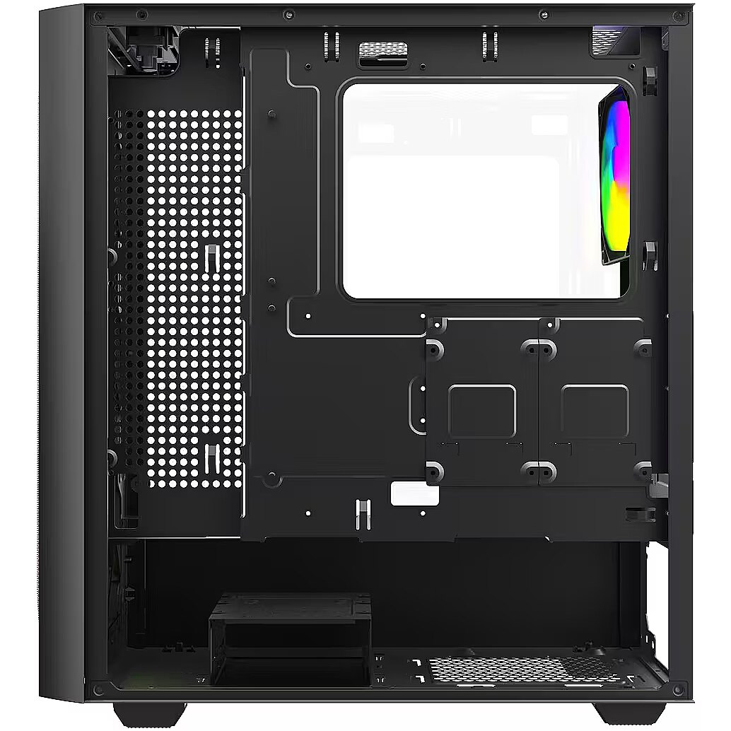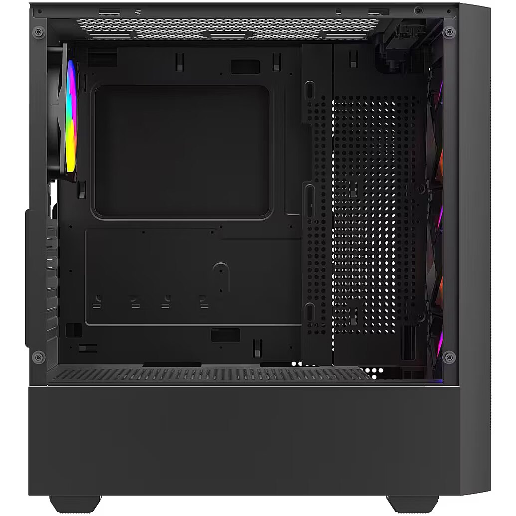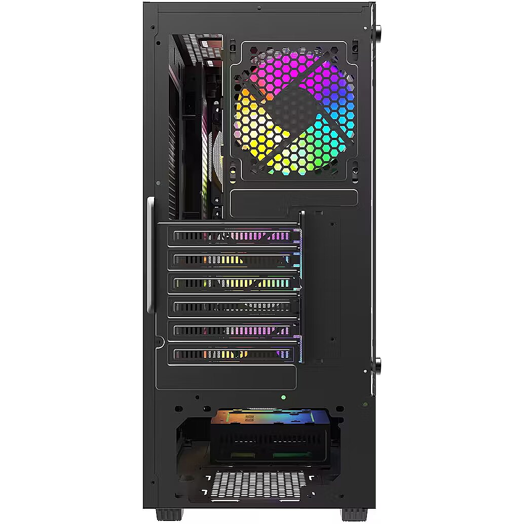 Other features - Supported drives: 2 × HDD (3.5) + 2 × SSD (2.5) or 1 × HDD (3.5) + 3 × SSD (2.5) Motherboard compatibility: ATX, mATX, Mini-IATX Maximum CPU cooler height: 170 mm Maximum graphics card length: 350 mm Maximum power supply length: 180 mm / with SSD/HDD bays removed 230 mm Supported water cooling: 1 × 120/240 mm (top), 1 × 120/240/280/360 mm (front), 1 × 120/240 mm (next to the motherboard tray), 1 × 120 mm (rear) Input/output ports: 1 × USB-A 3.1 Gen 1, 2 × USB-A 2.0, HD audio PCIe expansion slots: 6 Dust filters: 1 × top, 1 × power supply Included fans: 4 × 120 mm RGB, 4-pin, 1200 RPM (3 × front, 1 × rear) Supported fans: 3 × 120 mm (front), 2 × 120 mm (top), 1 × 120 mm (rear), 2 × 120 mm (next to motherboard), 2 × 120 mm (PSU compartment) Front panel material: mesh Left side panel material: glass