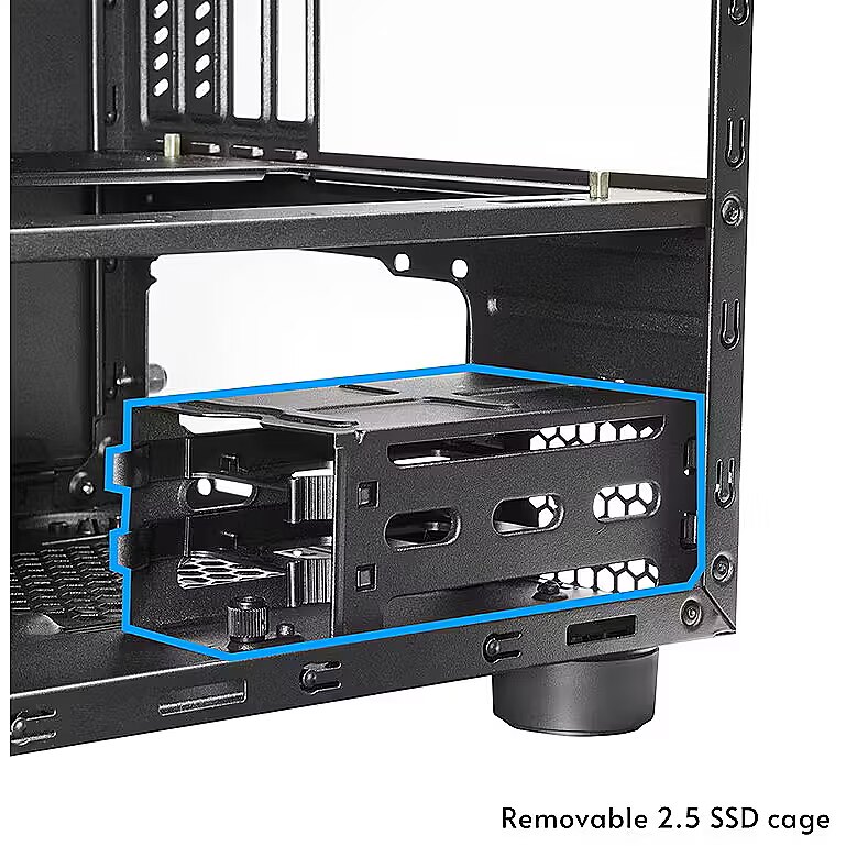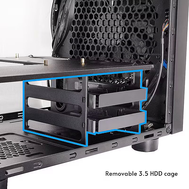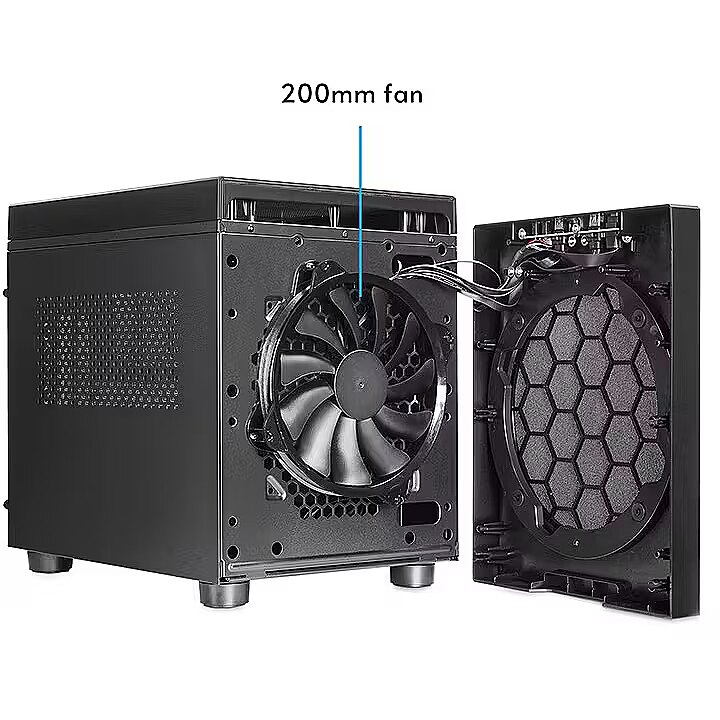 Obudowa oferuje elastyczną kompatybilność z podzespołami - obsługuje zasilacze ATX o długości do 160 mm, chłodzenia CPU do 160 mm wysokości oraz karty graficzne o długości do 335 mm. Zapewnia różne opcje chłodzenia, w tym możliwość montażu wentylatorów 200 mm z przodu i na górze lub chłodnicy 240 mm. Z przodu fabrycznie zainstalowany jest wentylator 200 mm PWM z trwałym łożyskiem HDB, co gwarantuje cichą pracę.