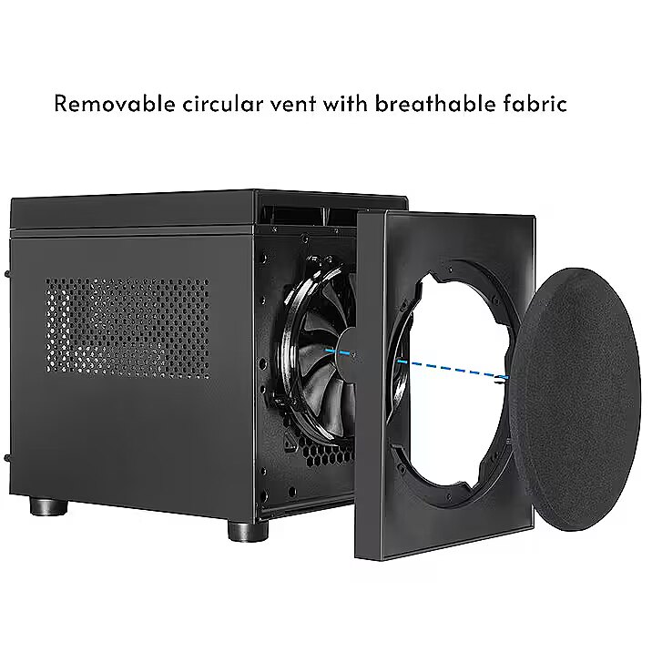 Przednia część obudowy posiada unikalną okrągłą wentylację z oddychającą tkaniną, zaprojektowaną pod wentylator 200 mm.