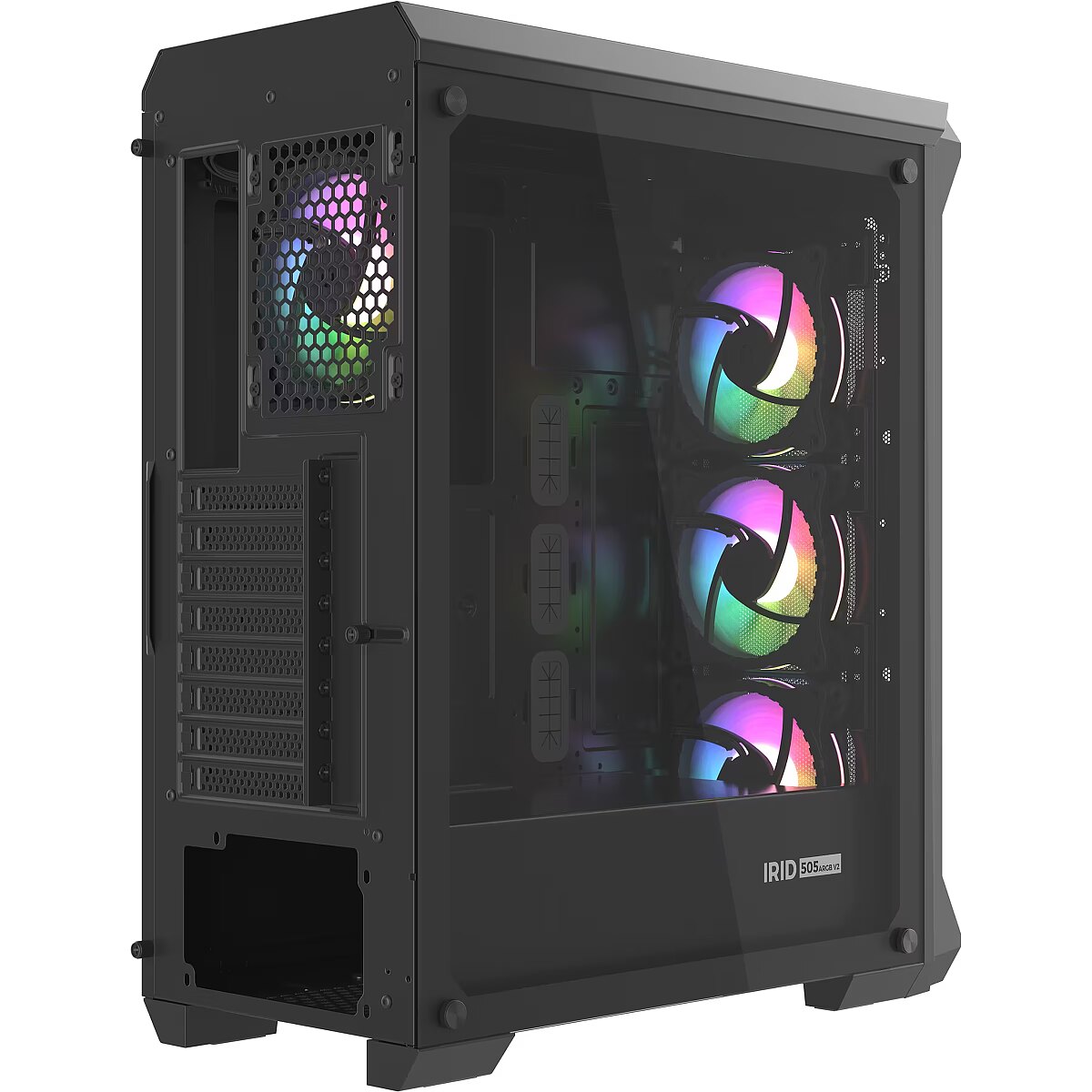 LongDesc - A BEAUTIFUL SPACE FOR EVERYTHING YOU NEEDThe front of the case is perforated, while the side panel is made of tempered glass with an aesthetic black print. As many as 4 magically backlit ARGB fans will turn your box into a fine piece of art. Irid 505 ARGB impresses not only with its functionality, but also an unusual range of visual impressions. We want you to be able to spill an impressive aura on the room, which will mark your "I" - Irid 505 ARGB makes it possible.4 ARGB FANS INCLUDEDIf want to be able to rest assured that your PC is running optimally, its hardware components must have the temperature conditions they need. Your mutual comfort is provided by four high-quality, very quiet 120 mm fans with ARGB lighting. If need be, the case can fit more fans - including 140mm!FANS WITH 3-PIN ARGB CONTROLLEREvery fan included with the Irid 505 ARGB as well as the controller itself have 3-pin 5V ARGB plugs, allowing you to connect the controller to a compatible* motherboard and control the backlight effects. The controller, when not connected to the motherboard, allows for independent backlight adjustment, and is additionally equipped with a 4-pin PWM plug, allowing for fan speed adjustment depending on the system load.* The ARGB system (5V 3-PIN) is not the same as RGB (12V 4-PIN). Make sure what type of backlighting your disc supports.FITS 7 SSD'STo offer you complete freedom of quick-access data management, Irid 505 ARGB allows you to install up to three SSDs. In addition, you have enough space for two standard HDDs (or 2 SSD).THREE TYPES OF MOTHERBOARD? NO PROBLEMYou can easily fit a Mini-ITX, Micro-ATX and ATX inside without worrying about finding matching components.FUNCTIONAL USB 3.0 PANELFor maximum comfort of use, the top of the case comes with as many as four USB ports, including two USB 3.0 port. We have conveniently placed two jacks close to you, so that you can easily plug in your headphones and microphone. All this in addition to a button controlling the phenomenal ARGB lighting, so that you can set it to as you like it.A CASE WHERE CABLES DISAPPEARGenesis Irid 505 ARGB has ample space behind the motherboard tray and many rubber grommets, making cable management a breeze and ensuring a great appearance from the outside.SLOT-IN MECHANISM FOR DRIVESThe Irid 505 ARGB ensure maximum comfort in using, because we have simplified the installation of the drives by using simple "slot-in" technology. This simple mechanism enables you to install and uninstall SSDs and HDDs without having to break out the tools again.EQUIP IT WITH LIQUID COOLING UP TO 280 MMYou decide what components go into your PC. If needed, you can install a liquid cooler up to 280 mm! Irid 505 ARGB offers complete freedom when it comes to hardware and a wide range of cooling options.3 DUST FILTERSGenesis Irid 505 ARGB offers a clean environment inside the case for a long time. The set includes three dust filters to ensure maximum order. The Irid 503 ARGB has been designed with attention to every detail, ensuring long-term user satisfaction.ALWAYS-STYLISH EXTENSION PORTSThe plugs of the expansion sockets are screwed on, not broken off, allowing them to be reassembled if necessary. Just open what you need and turn it off when the socket is empty. With Irid 505 ARGB, everything will always look stylish and phenomenal.